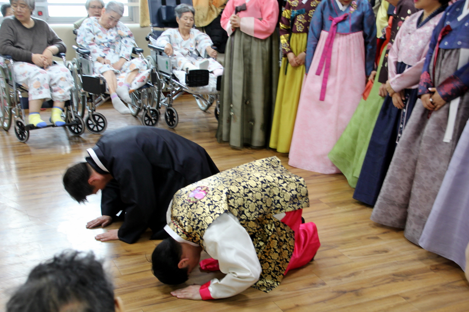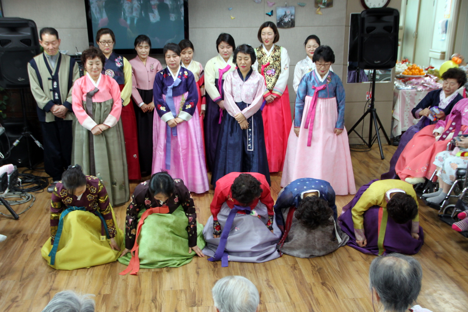본 원은 민족 고유의 명절(2월5일)을 앞두고 설날 세배 잔치를 실시합니다. 직원과 내빈을 비롯해 보호자, 자원봉사자, 후원자님 들의 세배 인사와 어르신 덕담으로 진행됩니다. 나아가 2부 순서에는 다사랑뮤직클럽소리봉사단의 민요춤 등의 공연이 예정돼 있습니다. 2월 생신잔치와 곁들여 실시하는 만큼 보호자님들의 많은 참석을 부탁드립니다. □ 시간계획