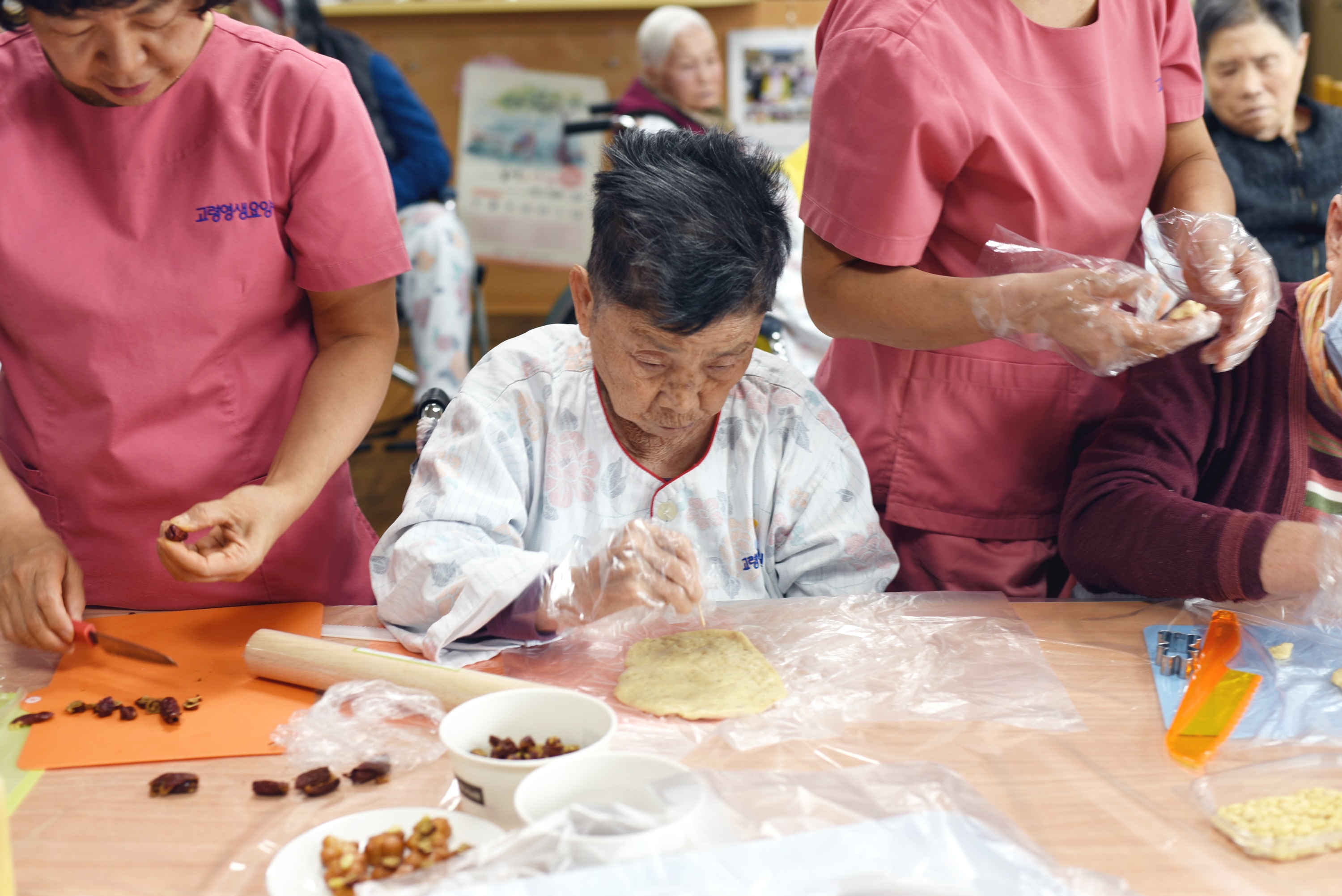 정월대보름은 음력 정월보름날을 말하며 개인적인 기복 행사인 부럼깨물기, 더위팔기, 귀밝이술 마시기나 집단의 이익을 위한 줄다리기, 다리밟기, 고싸움, 돌싸움, 쥐불놀이 등 행사를 하는 명절로 설날과 추석 만큼 큰 날입니다. 고령영생요양원에서는 어르신들과약과만들기 요리를 준비했습니다 잣 호두 대추를 이용해 약과를 만들어 보는 시간 |