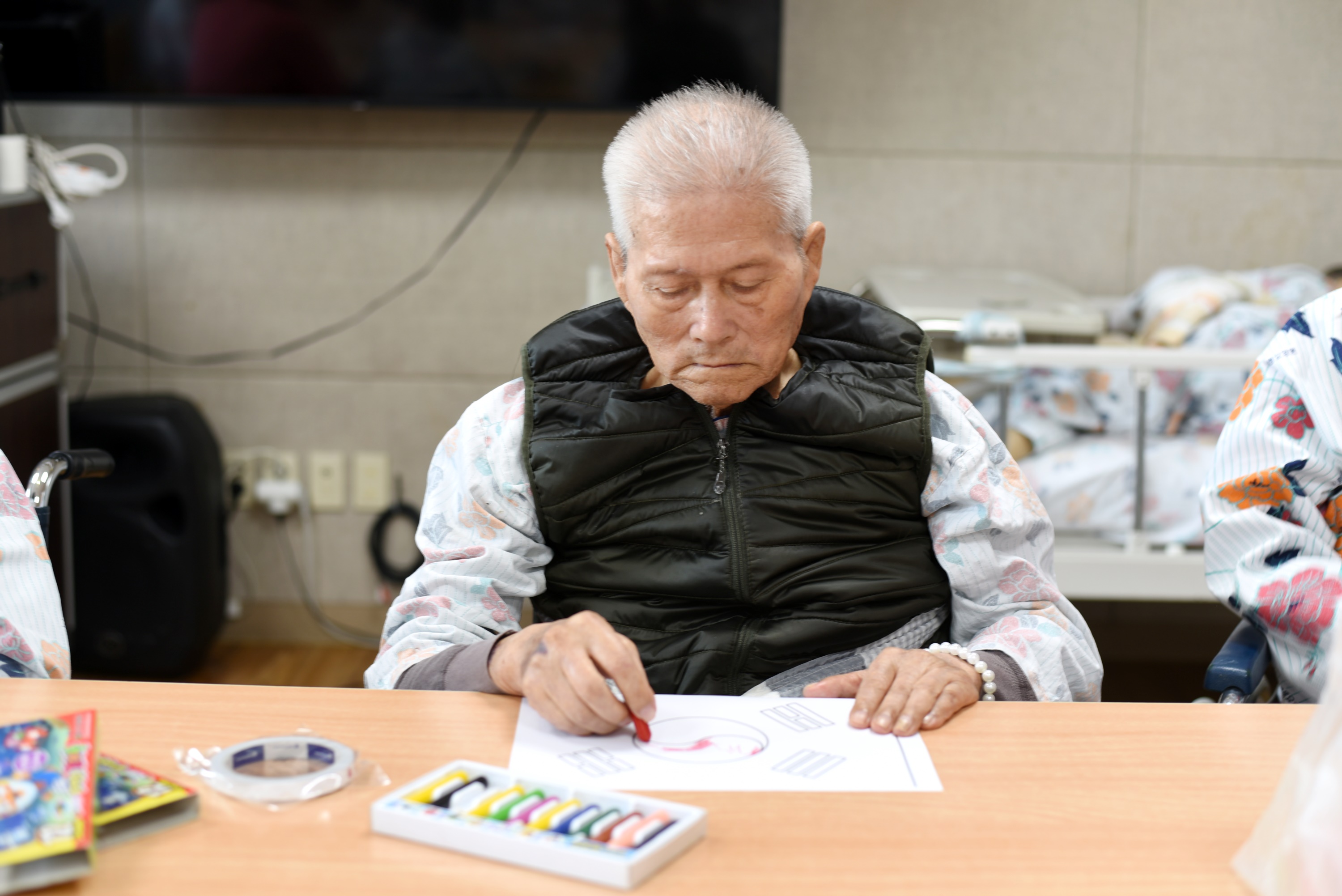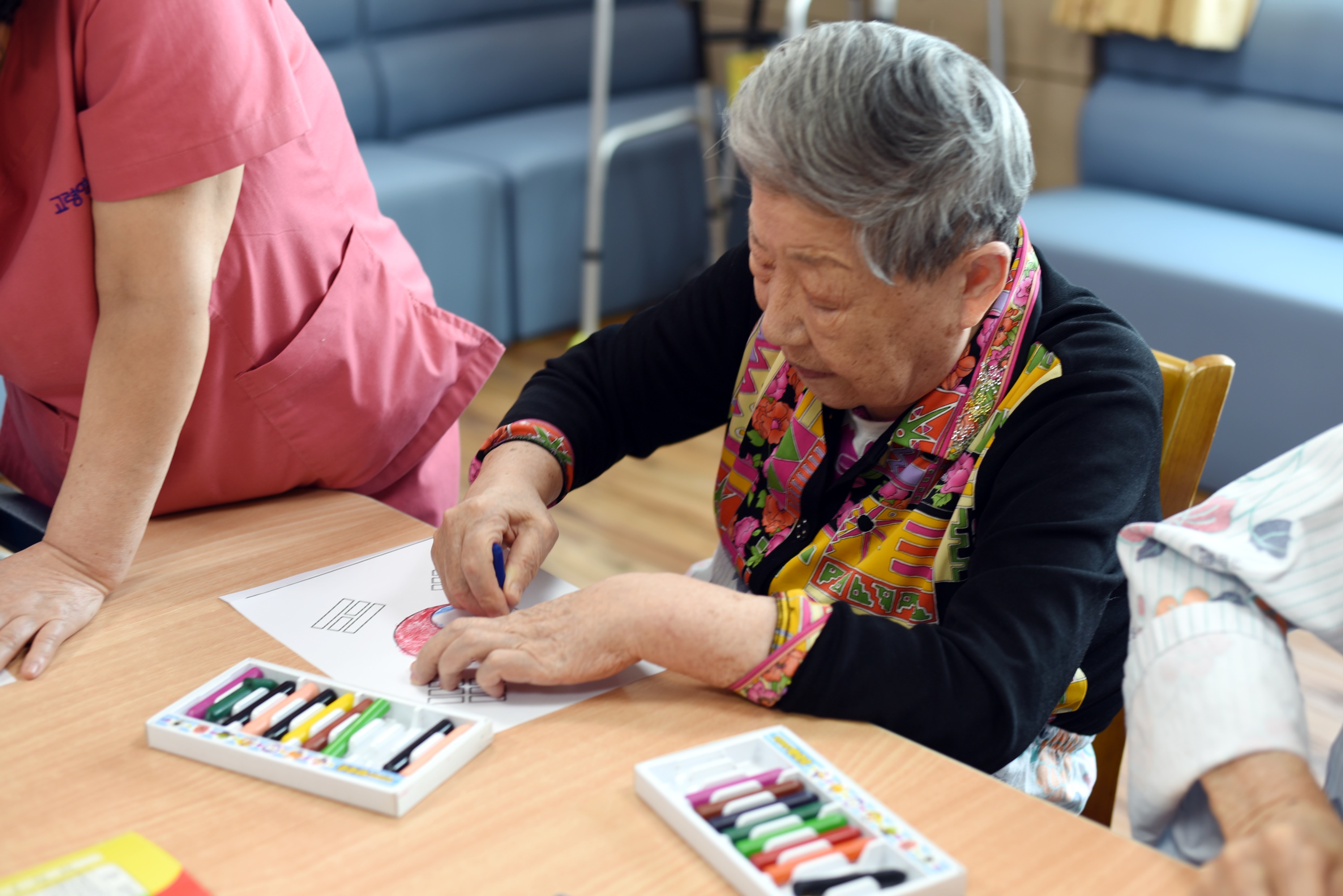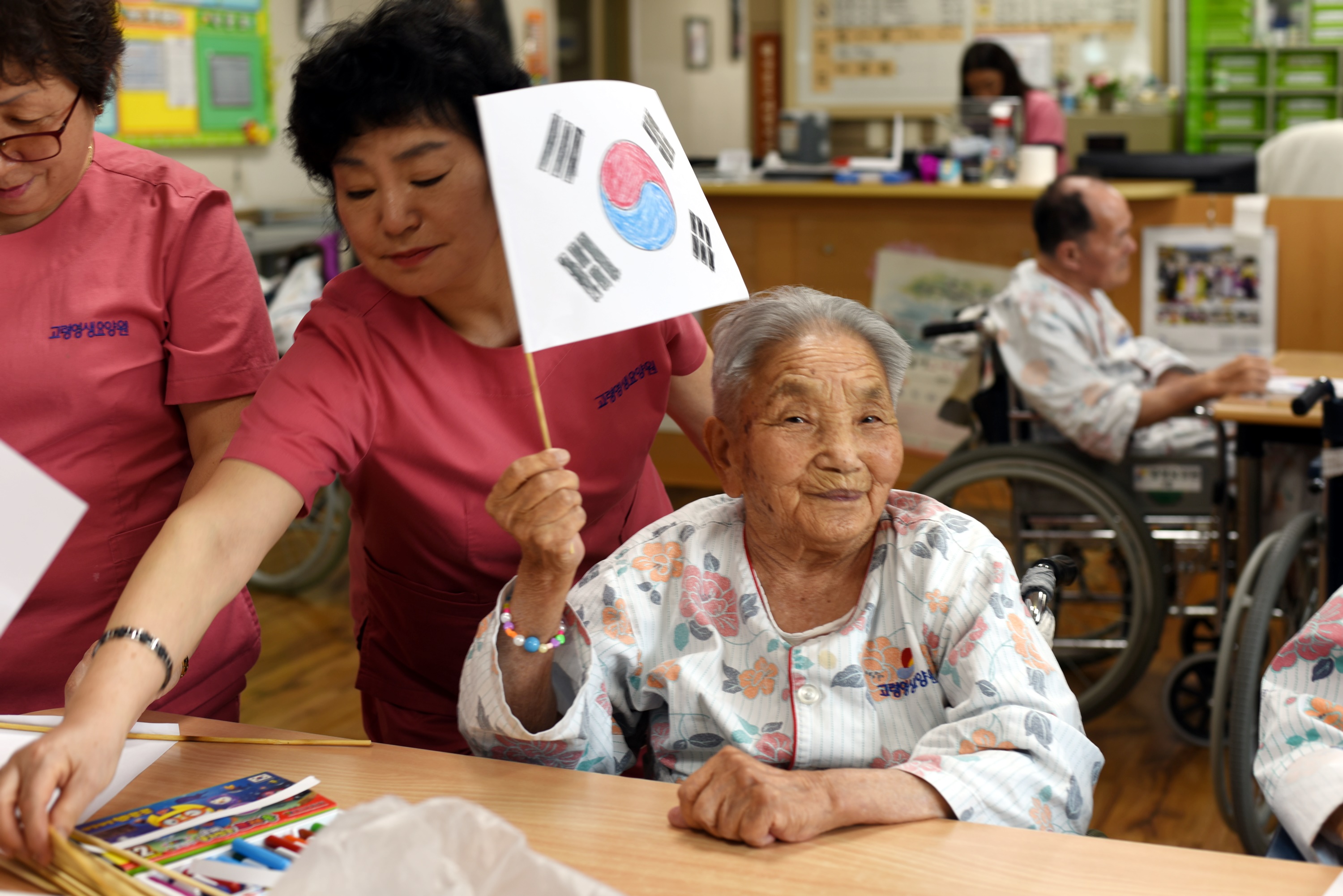 3.1운동 100주년 기념을 고령영생요양원에서도 준비했습니다. 오늘은 태극기 만들기를 색칠하는 시간과 만세를 외치는 시간. 색칠한 태극기를 들고 대한독립 만세도 외치시고 태극기 노래도 부르시며 조국을 사랑하는 시간을 가지셨습니다. |