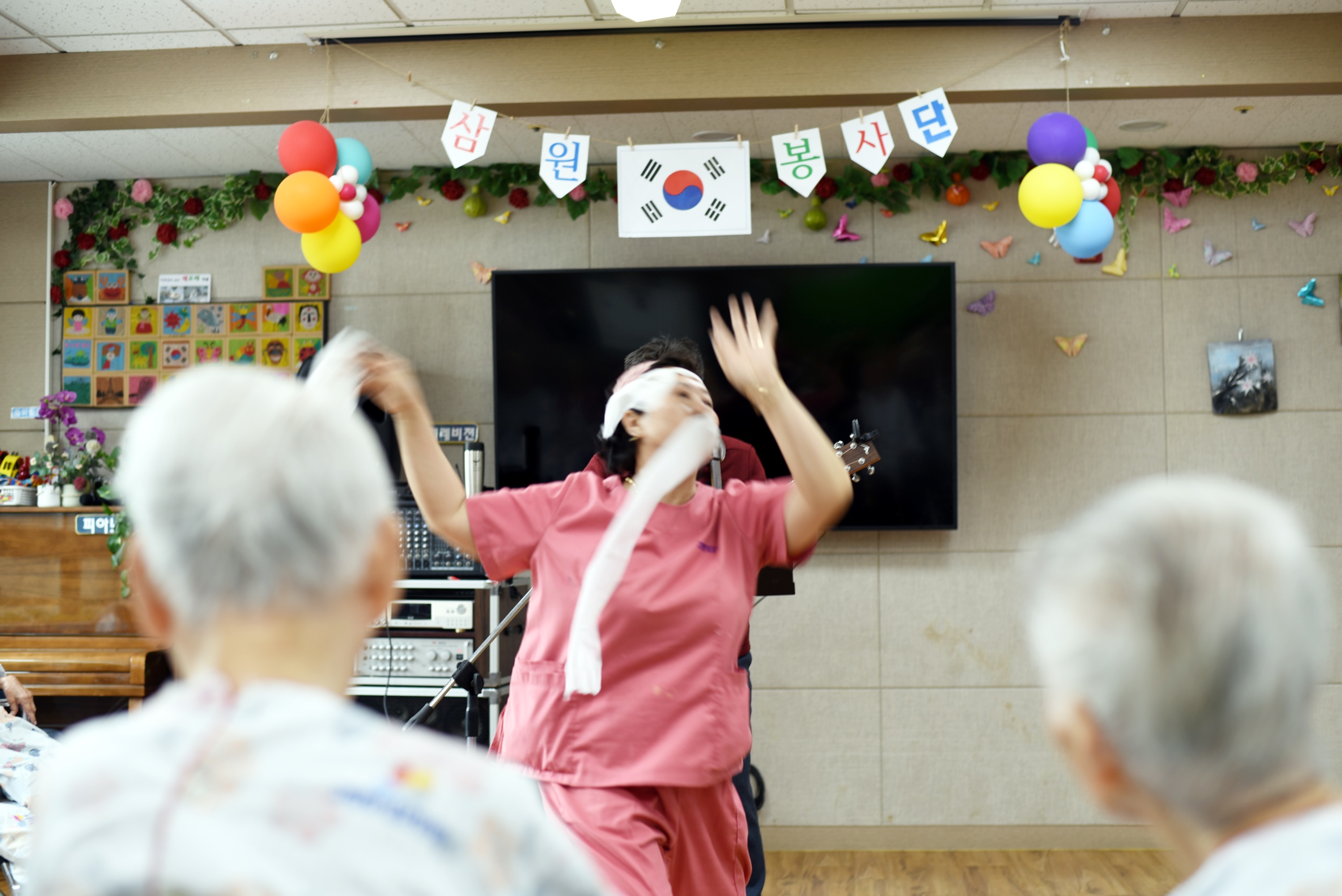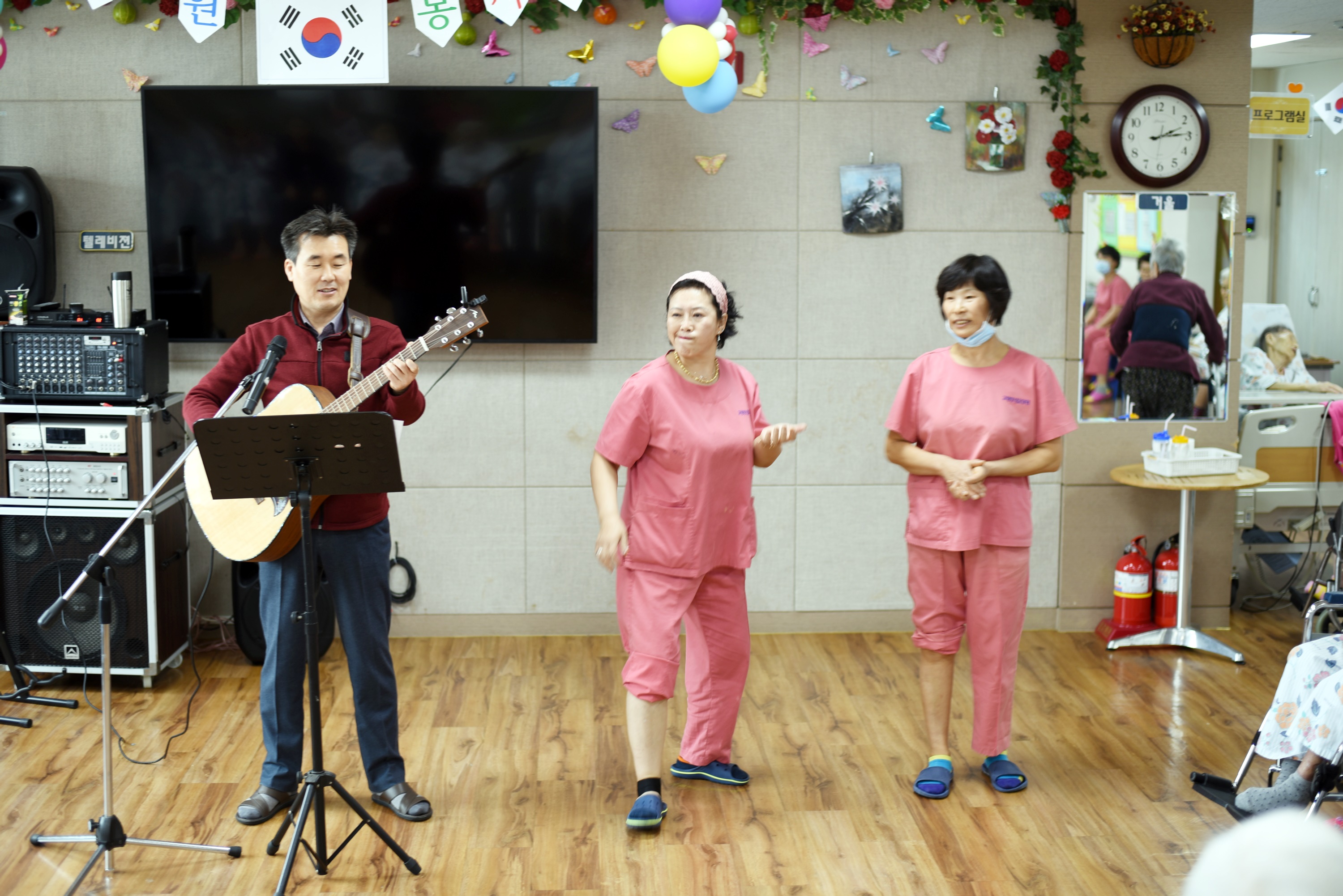 고령영생요양원은 다재다능하신 분들이 ~~~ 레크레이션의 대가~~ 김영규 원장님과 보조요원들~ 어르신과 흥이 있는 즐거운 레크레이션 시간을 가졌습니다. |
