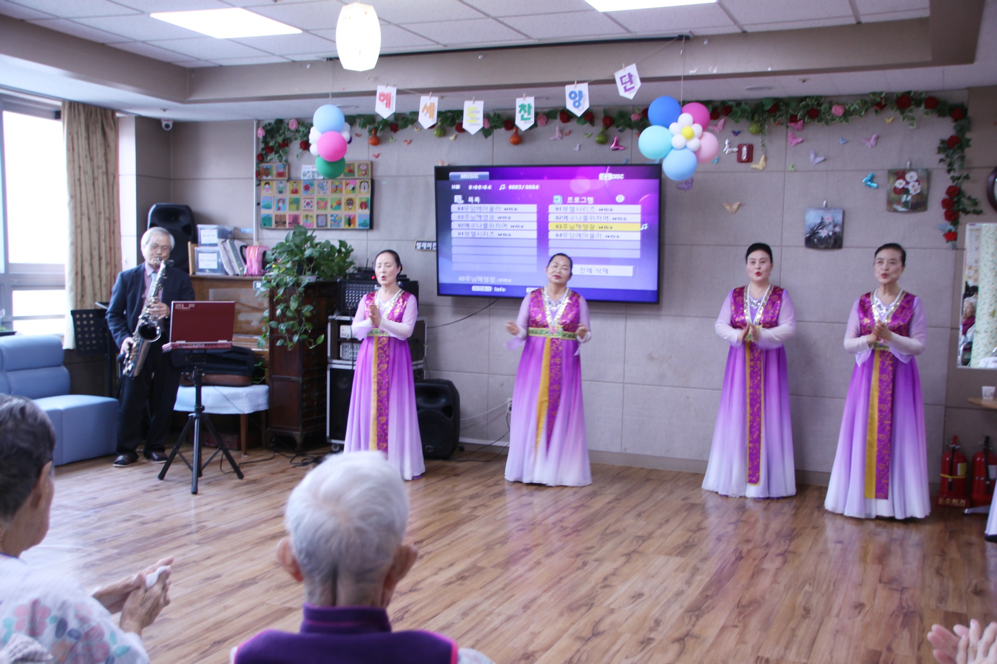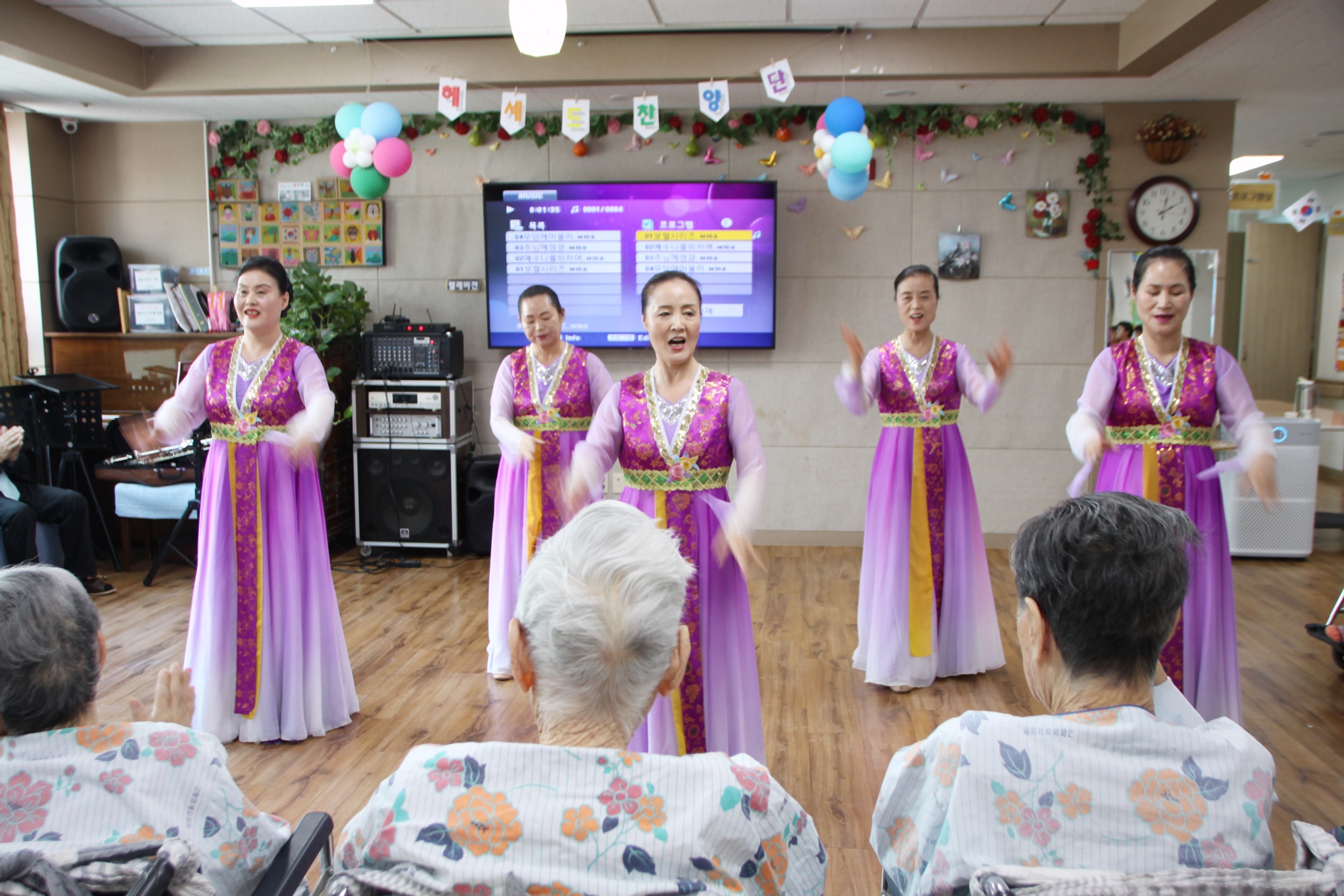 헤세드 찬양봉사단에서 매주 첫주 월요일 요양원을 방문하셔서 어르신들에게 율동과 손유희 섹소폰으로 즐거운 시간을 주십니다. 건강은 누가 챙겨요~~~ 우리가요(어르신_~~ 라는 마음의 소리를 높여 주시는 봉사단에게 감사드립니다. |