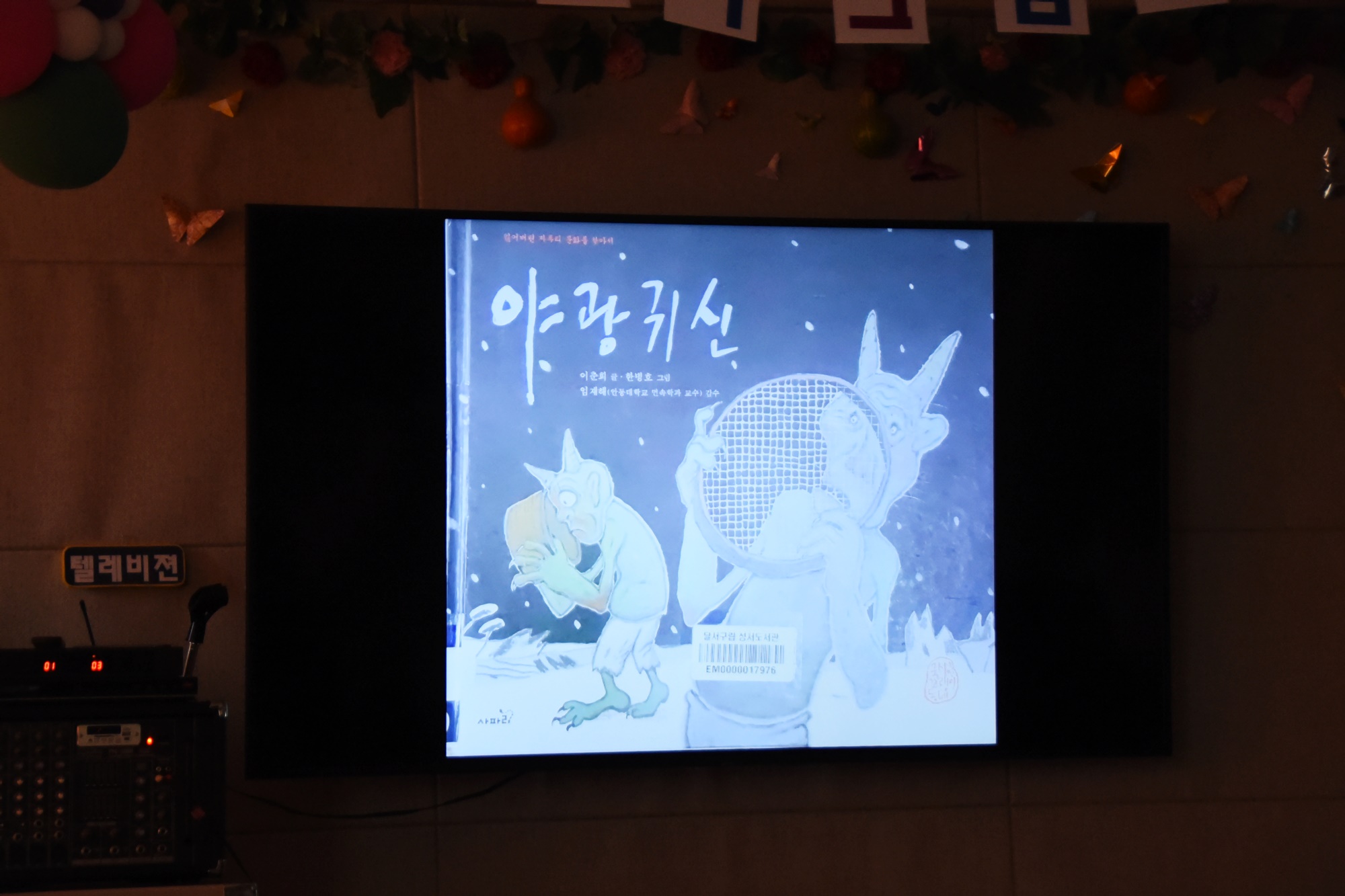 오늘 읽어드린 책은 야광귀신이야기로 어릴적 새해에 새신을 사면 도깨비가 새신을 가져갈까 싶어 채를 집에 걸어둔 이야기로 어르신의 추억을 회상하는 날입니다. 자음으로 과일이름 맞추기등 재미있는 시간을 가졌습니다. |