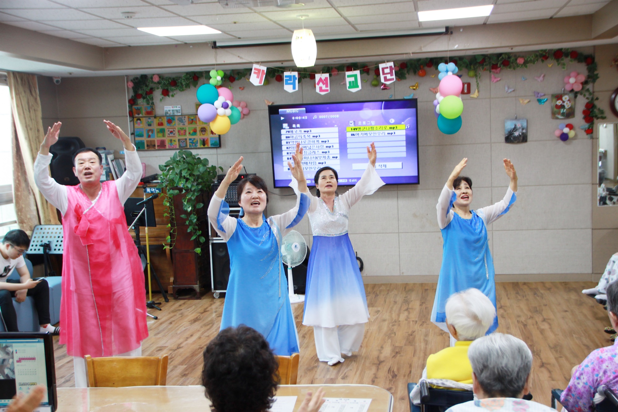 카라선교단에서 어르신의 여가를 즐겁게 해드리기 위해 봉사를 오셨습니다. 좋은 말씀과 아름다운 율동으로 삶의 즐거움을 전해 주셔서 감사드립니다. |