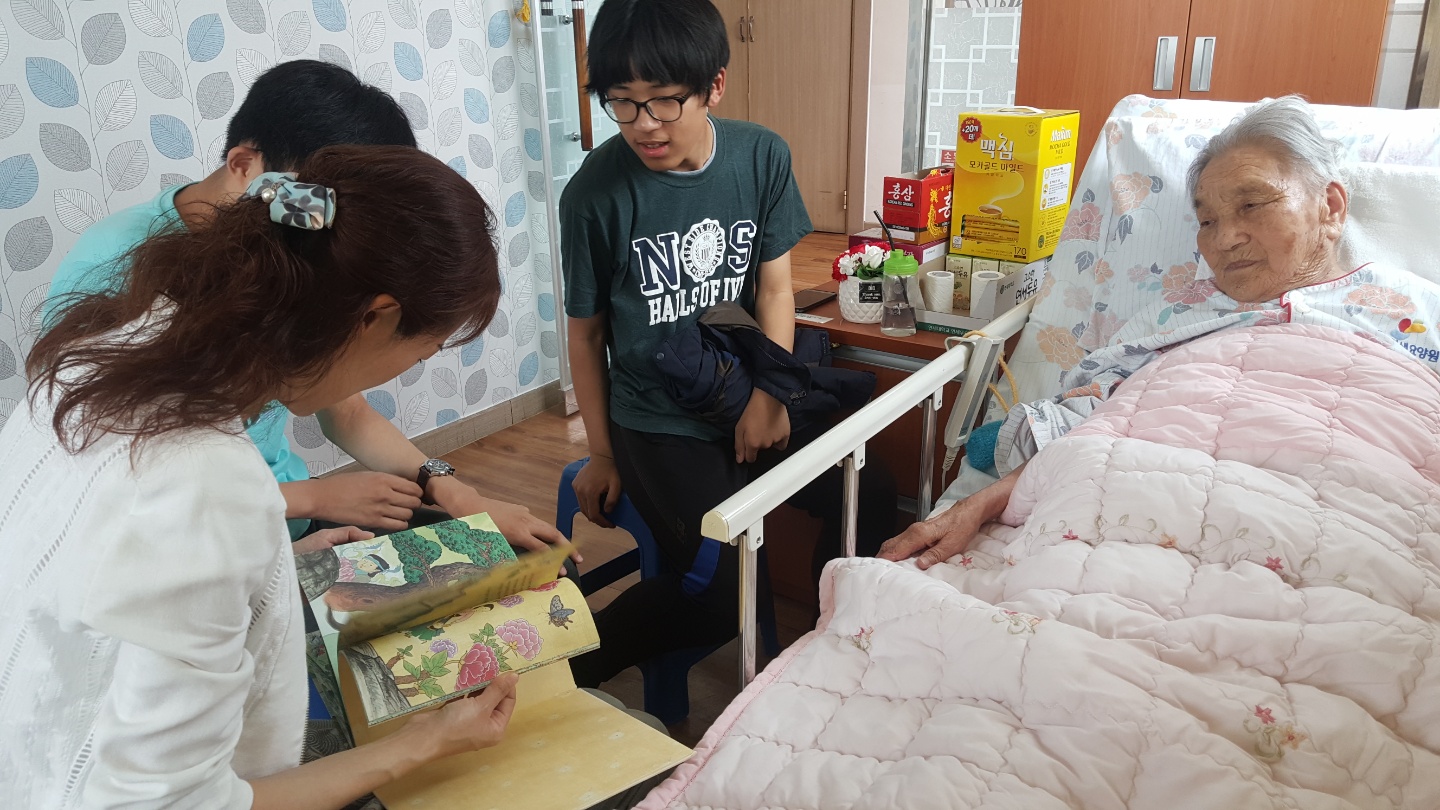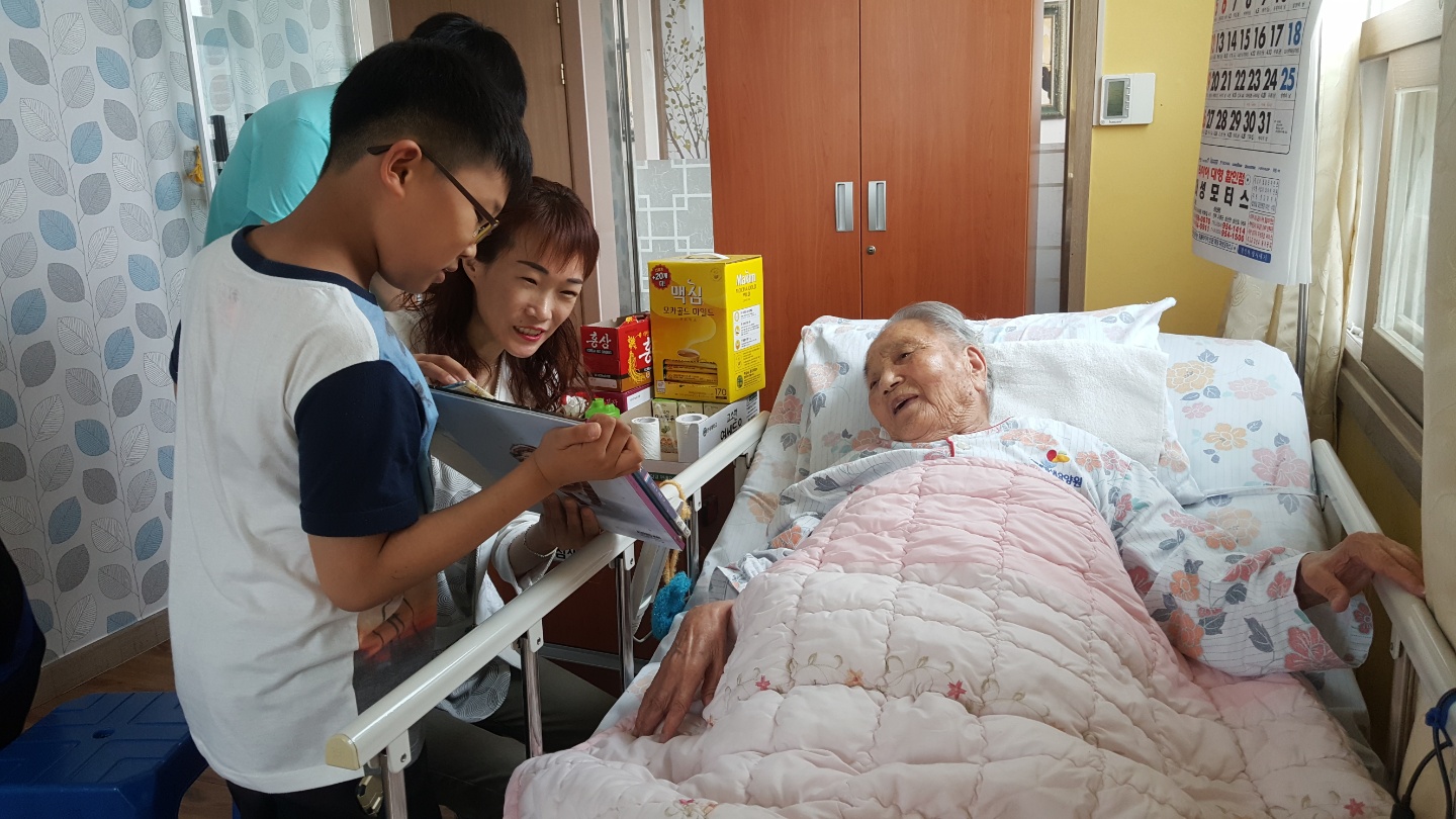 어르신 책을 읽어드리기 위해 엄마랑 자녀가 함께 봉사를 오셨습니다. 봉사 자녀 혼자 보내기 보다 이렇게 가족이 함께 참여하면 더 의미가 있죠~ 오늘 봉사를 하고 전00군 뿌듯함이 느껴진다고 하네요 어르신을 위해 도움 주셔서 감사합니다. |