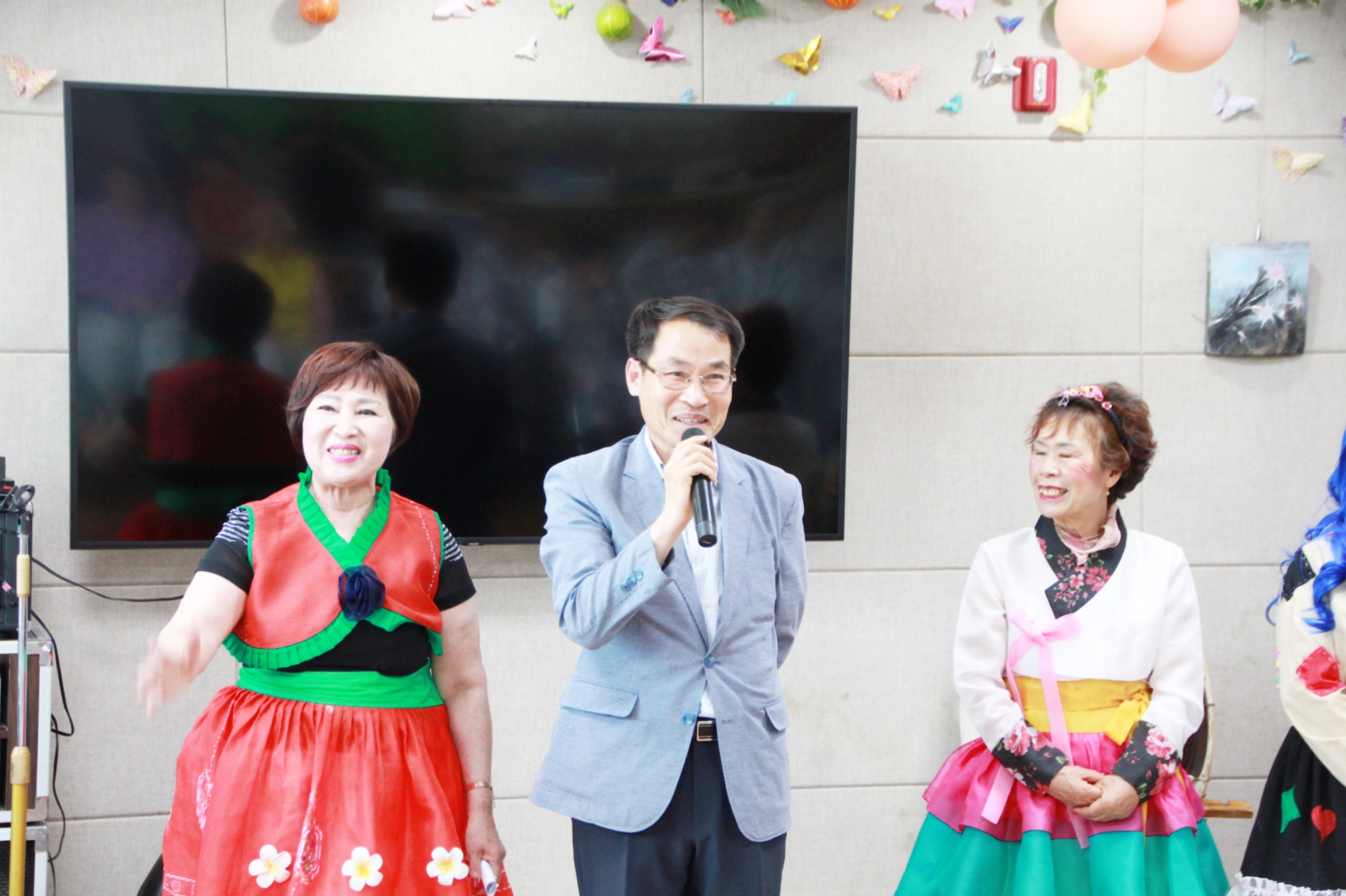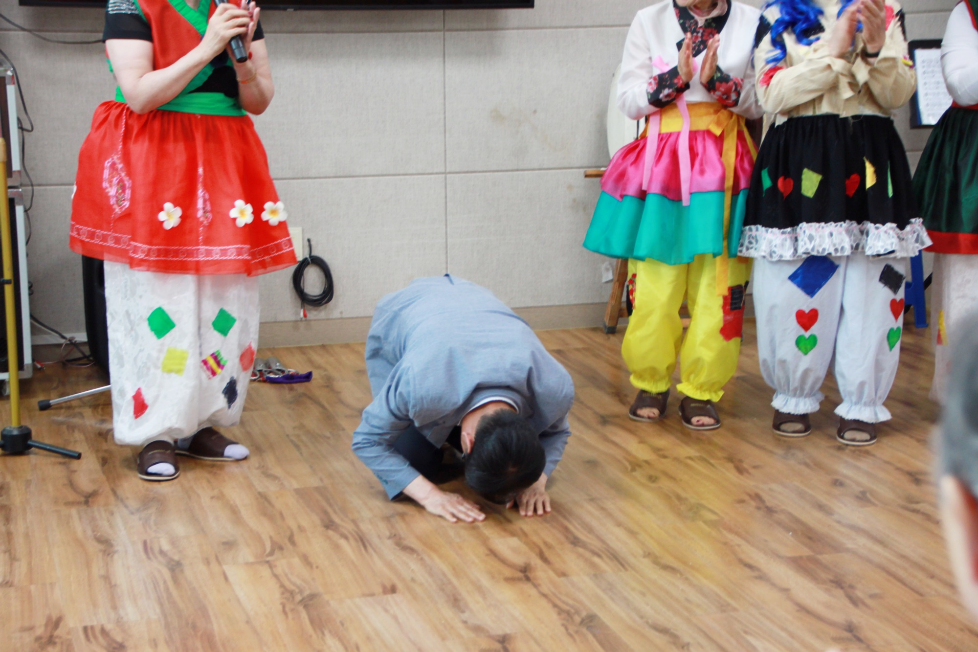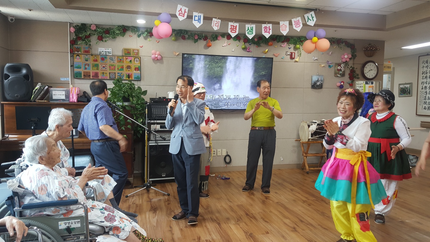 성산면 최영철 면장이 성산면 삼대1리 평생학습 봉사단에 관심이 많으셔서 오늘 이필여 이장님 외 회원들고 함께 동반해 주셨습니다. 어르신들 늘 건강하시라고 큰 절을 올리시며 만수무강하시라고 인사하셨습니다. 어르신들 앞에서 노래도 한자락 불러 주시고 삼대1리 봉사단의 아코디언, 하모니카, 신나는 노래 품바로 즐거운 시간을 주셨습니다. |