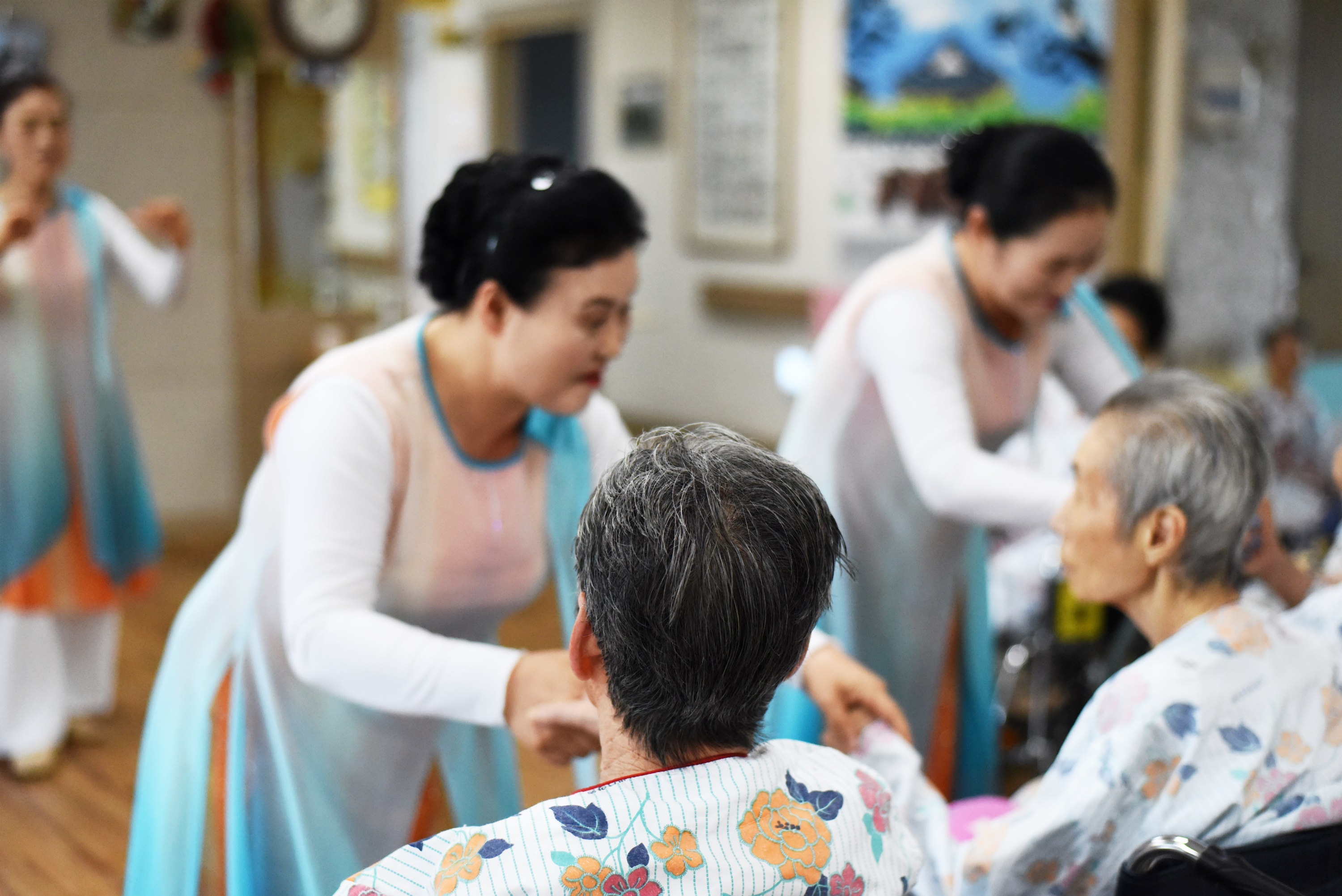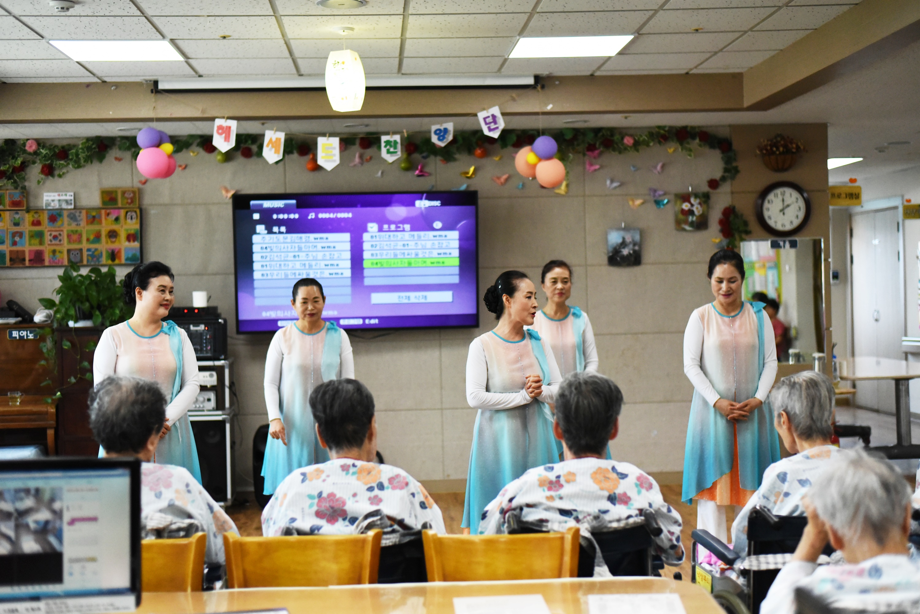 | 율동과 노래 손유희로 어르신들을 찾아 오시는 헤세드워크샵 찬양단은 매달 첫주 월요일 어르신을 찾아 뵙고 즐거움과 활력을 주십니다. 매달 요양원을 방문하셔서 새로운 율동을 준비 해주시는데요 오늘도 어김없이 공연을 구상해 오셔서 즐거움을 주고 레크레이션을 따라하도록 해 주셔서 어르신 인지력도 쑥쑥 올려 주시고 계십니다 | |||
