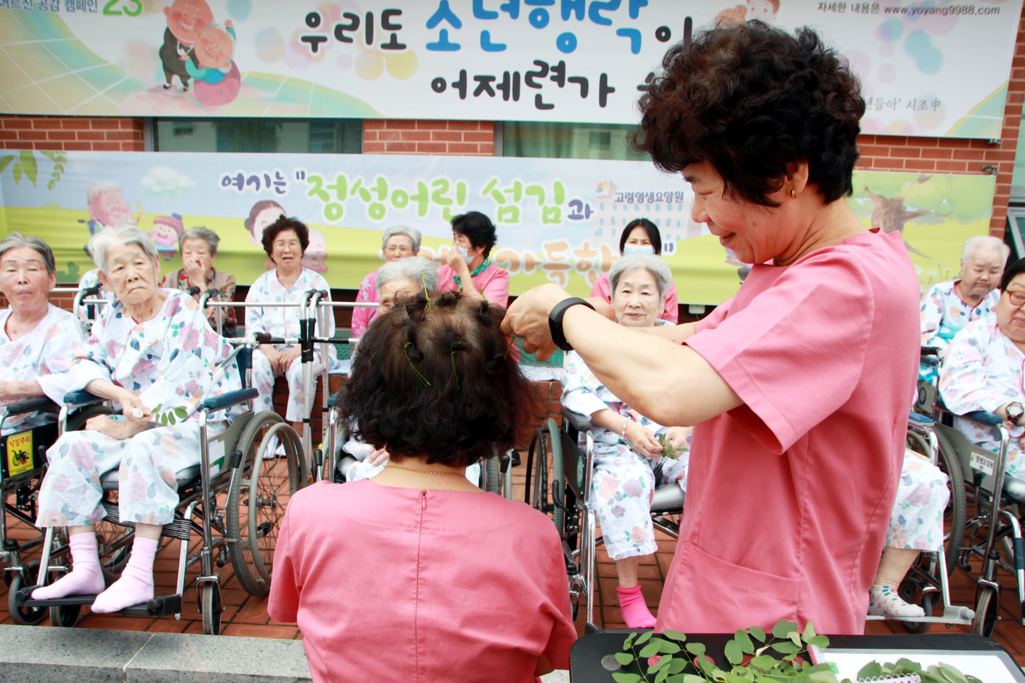 아카시아 파마라는 동화책을 읽고 아카시아 파마도 하고 요양원 밖에서 시스템을 준비해 외부동화활동을 준비해 즐거운 시간을 가졌습니다. 어릴적 추억 아카시아로 파마를 했던 추억을 떠 올리며, 그 시절의 언니 동생과 친구의 얼굴도 살짝 떠올려 보시며 추억을 되돌리는 시간을 가졌습니다. |