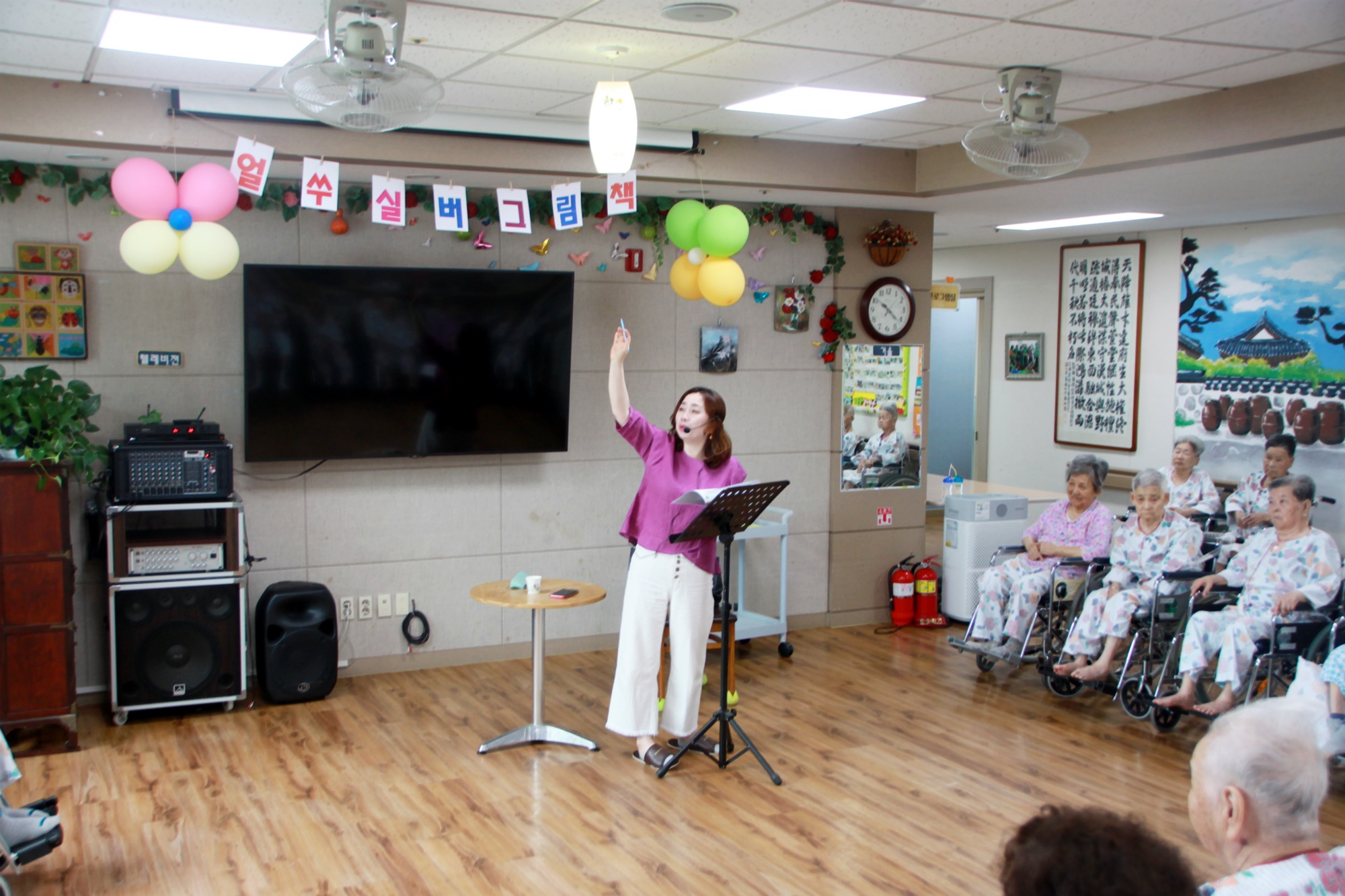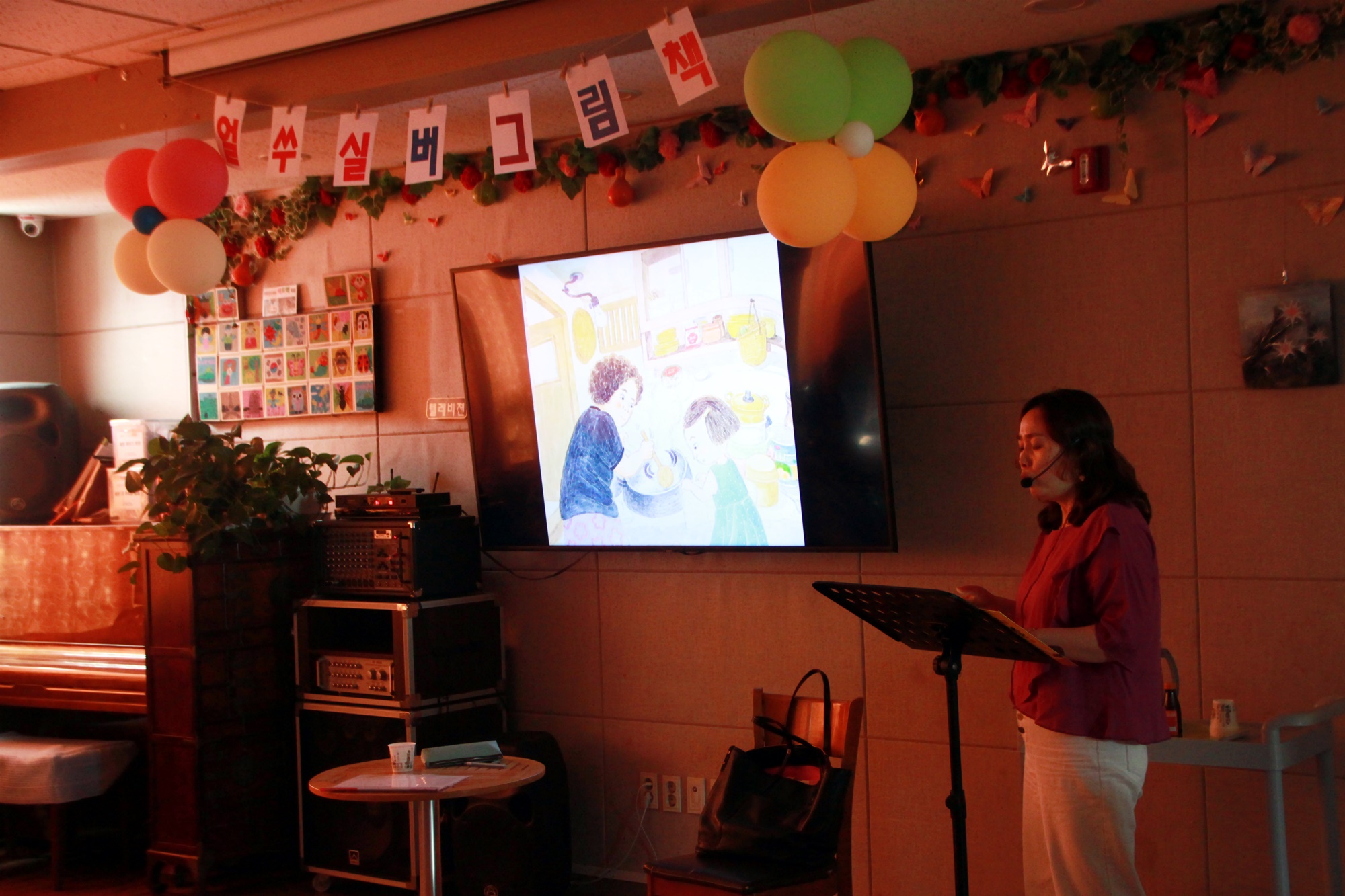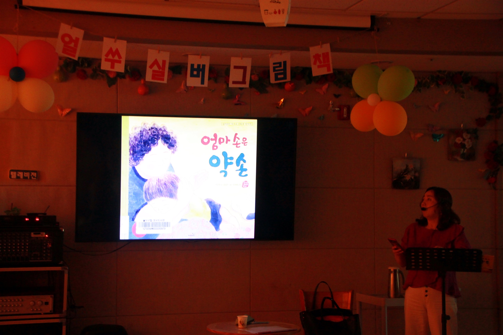 고령도서관 동화구연시간입니다. 늘 우리에게 친숙한 단어 엄마~~ 엄마손은 약손이라는 이야기로 어르신과 엄마에 대한 추억회상여행을 떠나 봅니다. 누구나 엄마는 있죠 엄마에 대한 좋은 기억 마음 아픈 기억들을 이야기 하시며 그래도 역시 엄마는 우리에게 소중한 우리를 많이 사랑해주신 분이라는 이야기로 엄마를 불러 보는 시간을 가졌습니다. |