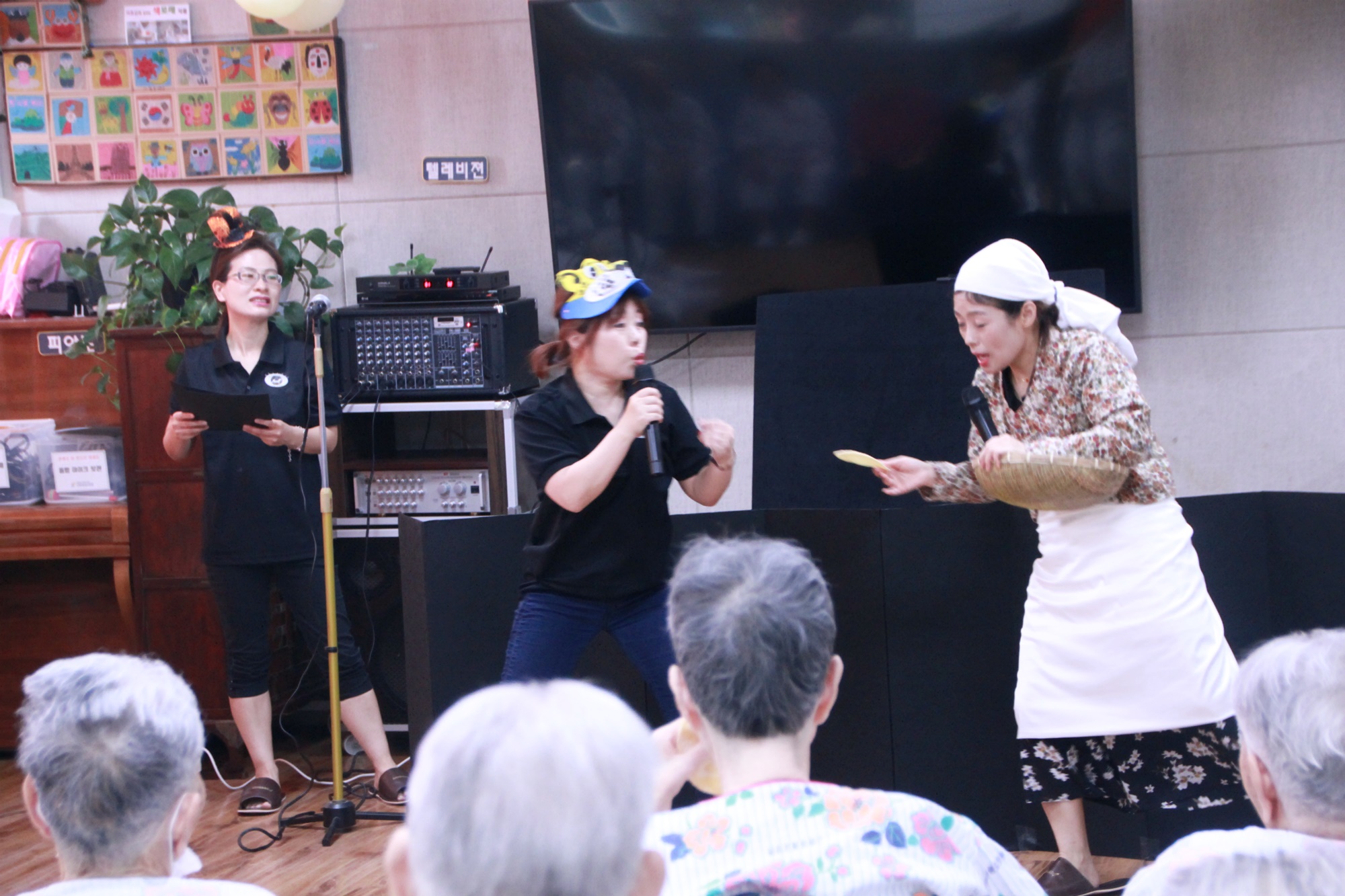 패널시어터 해와달 동화를 통해 표현력과 집중력, 기억력을 증진 하여 건강하고 즐거운 생활을 유지드리고자 해와달 이야기를 픽션으로 각색해서 오셨습니다 . 직접 옷을 입고 동극을 보여 주시며 패널을 이용해 이야기를 재미있게 전개해 주셔서 어르신들 웃음바다가 되었습니다. 떡을 뻥튀기라고 하시면서 어르신을 나눠드려 드시면서 즐겁게 이야기를 들으셨습니다. 감사드립니다. |