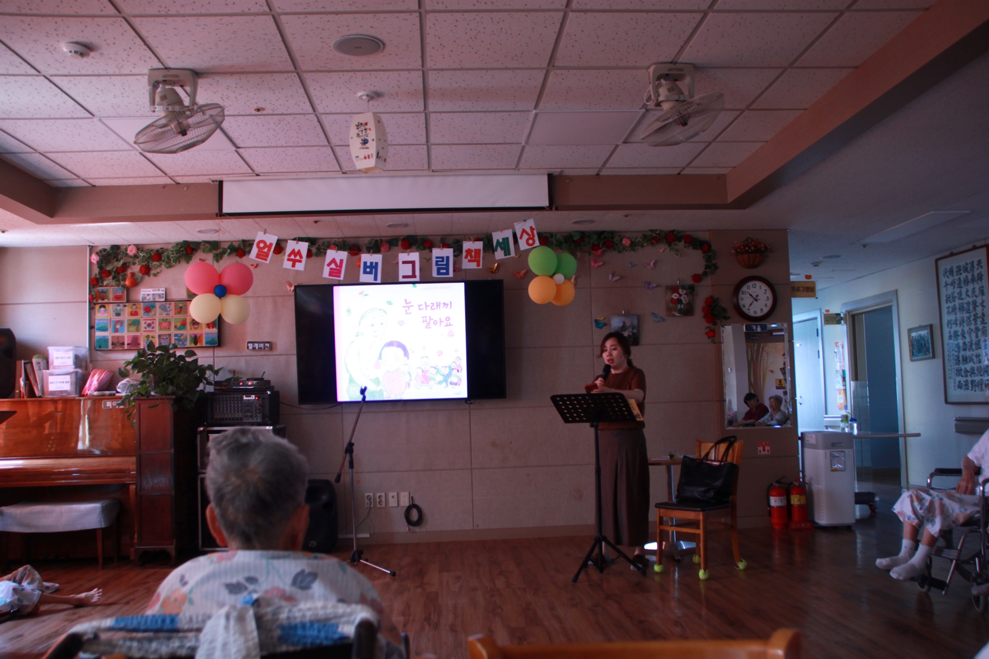 어릴적 추억을 회상하는 이야기를 선정해 어르신들의 인지를 쑥쑥 올려주시는 시간 고령도서관에서 준비해주시는 동화구연 시간입니다. 초성 게임으로 단어 맞추기는 어르신들이 신나하는 게임중의 하나 늘 어르신의 마음을 헤아려 자료를 준비해주시는 이원주 강사님께 감사드립니다. |