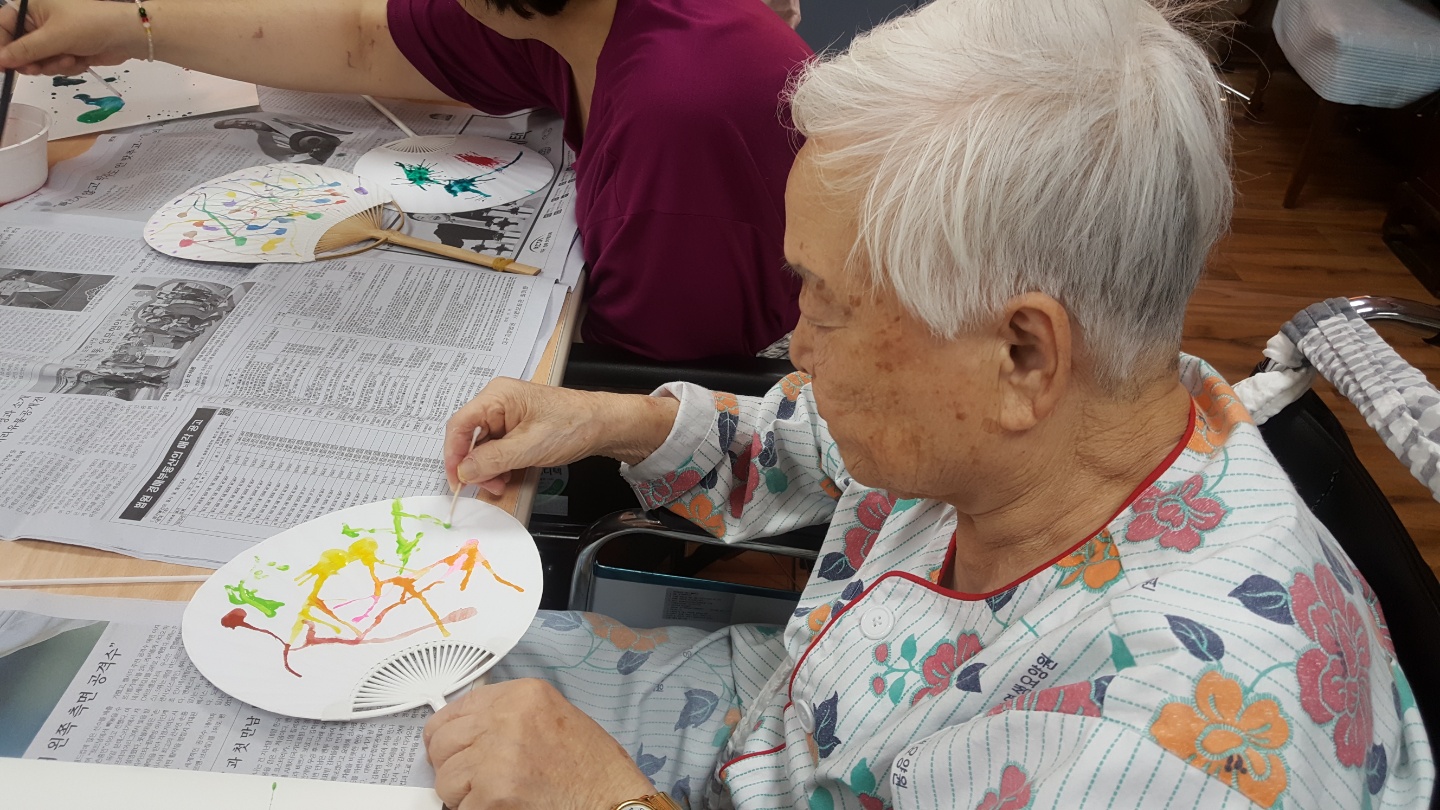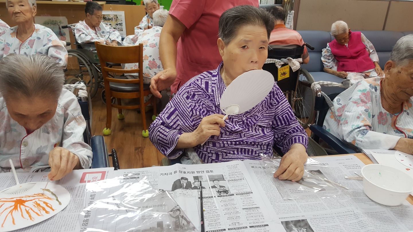 동화를 통해 표현력과 집중력, 기억력을 증진 하여 건강하고 즐거운 생활을 유지드리고자 고령도서관에서 4월부터 20회차로 어르신을 위한 동화구연시간을 주셨습니다 매주 화요일 오전 10시~ 11시까지 이원주 강사와 함께 동화도 들으며 만들기와 손체조등 다양한 활동을 전개 합니다. 오늘은 부채만들기 수업을 준비 해주셨습니다. 물감을 이용해 부는 기법과 면봉으로 찍기 기법을 이용해 어르신들이 세상에 하나뿐인 자신만의 부채를 만드셨습니다. 올 여름 시원하게 보내시겠죠 |