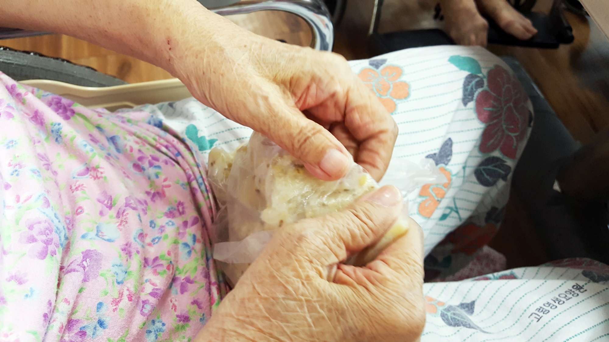 맛의 감각을 느끼며 직접 요리함으로써 성취감 및 만족감을 고취. 함께 음식을 시식함으로써 대인관계 향상삶의 즐거움을 찾고 오감을 자극해 삶의 활력을 찾아드리기 위해 요리 활동을 진행합니다. 어르신들과 함께 요리하는 시간으로 오늘 녹두죽만들기를 했습니다. 미리 녹두와 찹쌀을 삶아서 식힌 후 비닐에 적당량을 넣어 어르신들을 나눠 드린 후 손으로 조물조물 만지시며 어게어 줍니다. 양손으로 조물 조물 한손으로 조물조물 믹서기로 갈지 않고 소근육 운동을 합니다. 다 어겐 녹두와 찹쌀을 뜨거운 물에 넣고 죽을 끓여 주면 끝 끓인 죽을 식혀서 나눠드렸더니 맛있게 드셨습니다. 녹두죽 먹으니 더위가 싹 날라 가신다며 즐거워 하셨습니다. 입도 즐겁고 프로그램도 수행하는 요리시간 이었습니다. |