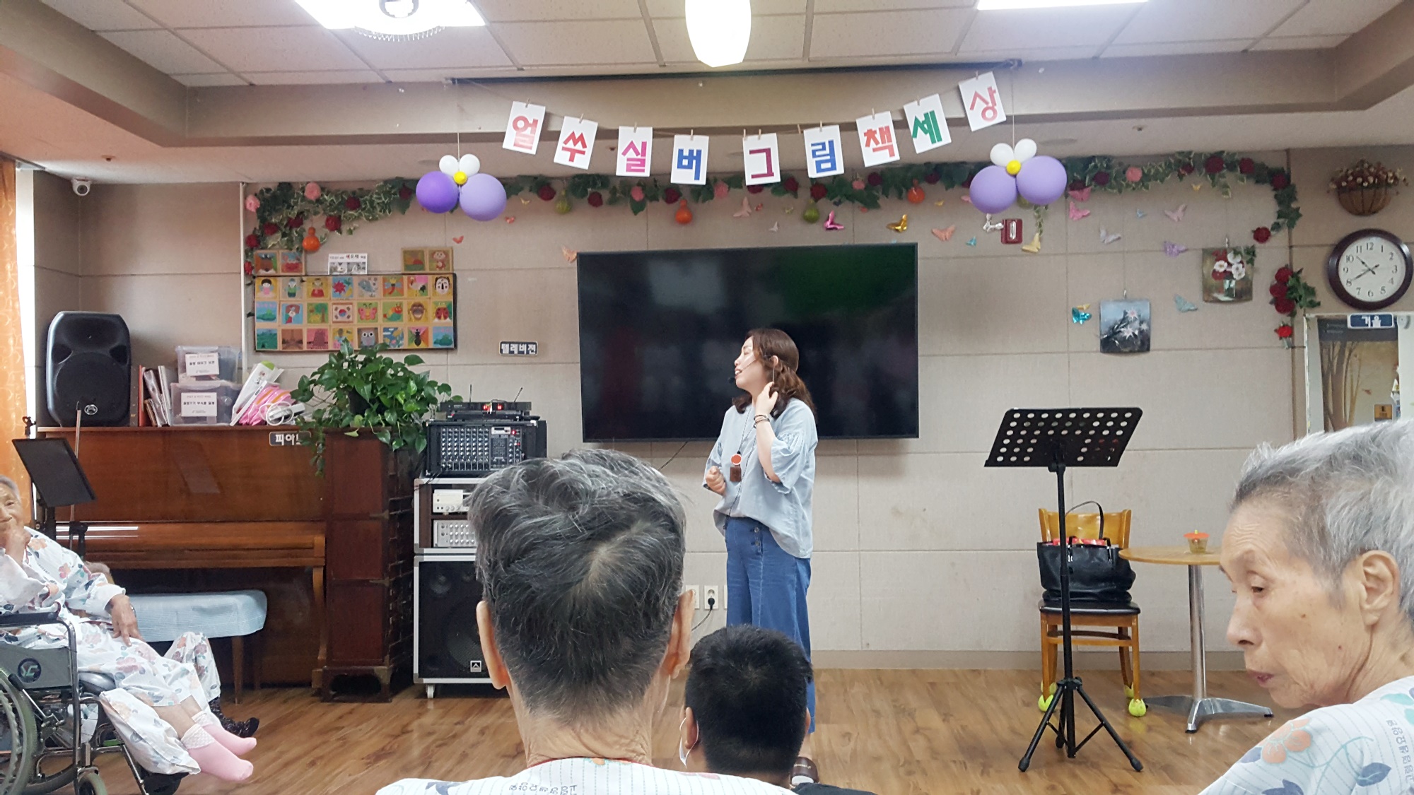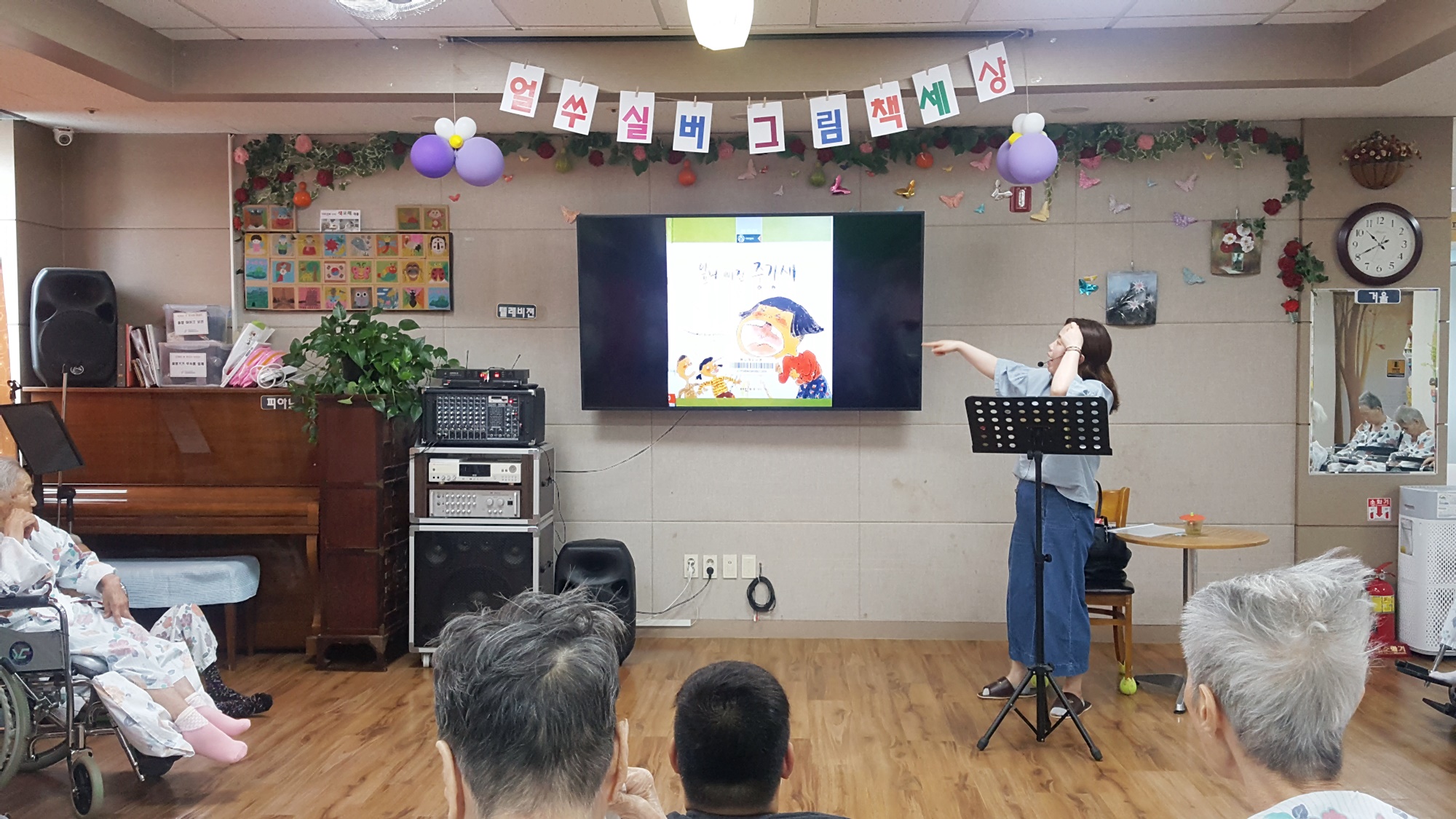 동화를 통해 표현력과 집중력, 기억력을 증진 하여 건강하고 즐거운 생활을 유지드리고자 고령도서관에서 4월부터 20회차로 8월20일까지 어르신을 위한 동화구연시간을 주셨습니다 매주 화요일 오전 10시~ 11시까지 이원주 강사와 함께 동화도 들으며 만들기와 손체조등 다양한 활동을 전개 합니다. 앞니 빠진 갈가지 냇가에 가지마라 붕어 새끼 놀란다 라는 동화를 가지고 오셔서 어르신들에게 재미난 책을 읽어 주셨습니다. 어르신들의 과거를 회상하며 어린시절 엄마가 실로 이를 빼주는 추억담과 이를 지붕에 던지는 이야기등을 들려 주셨습니다. |