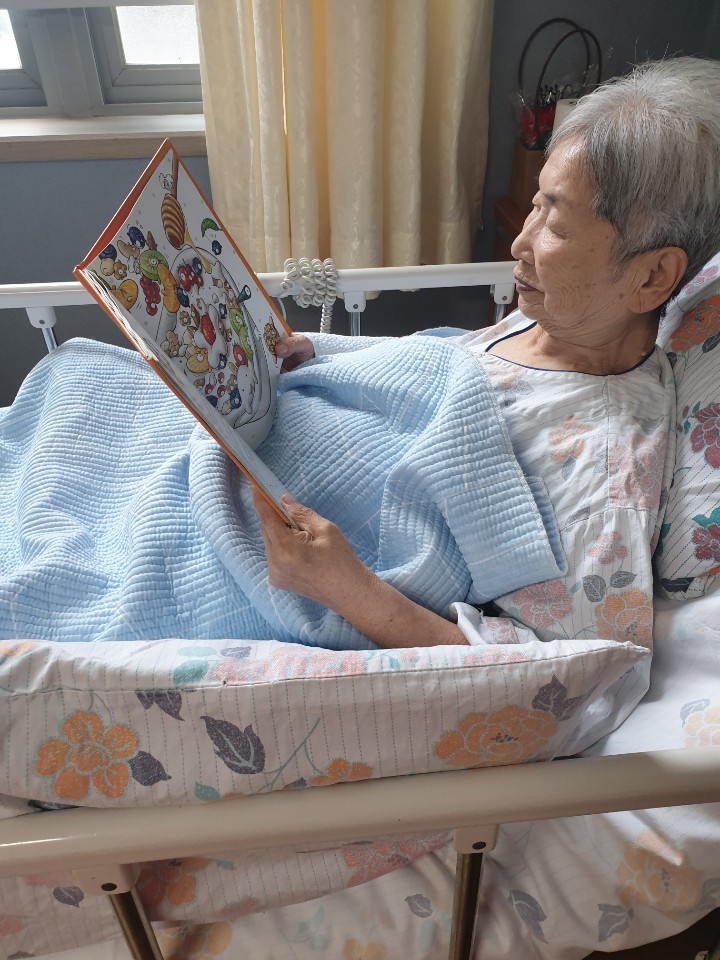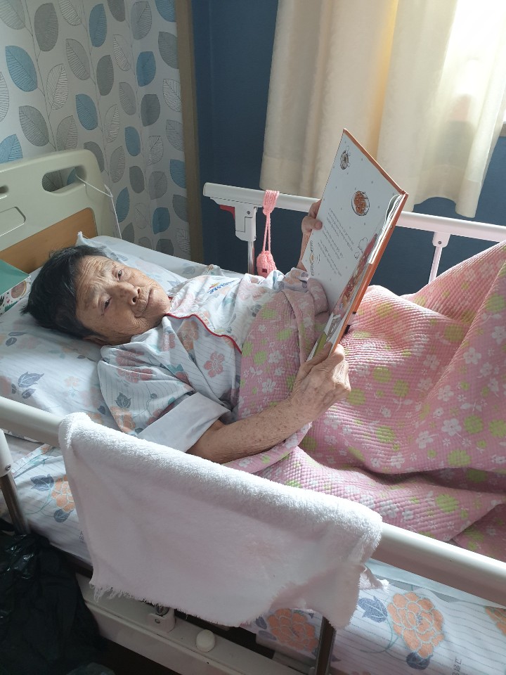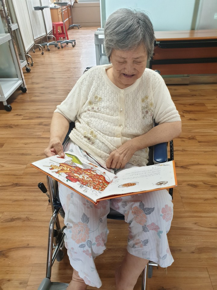 목욕날은 어르신에게 책을 제공해드리고 읽어드리며 어르신 잔존기능유지와 말벗으로 즐거운 시간을 보내십니다. |