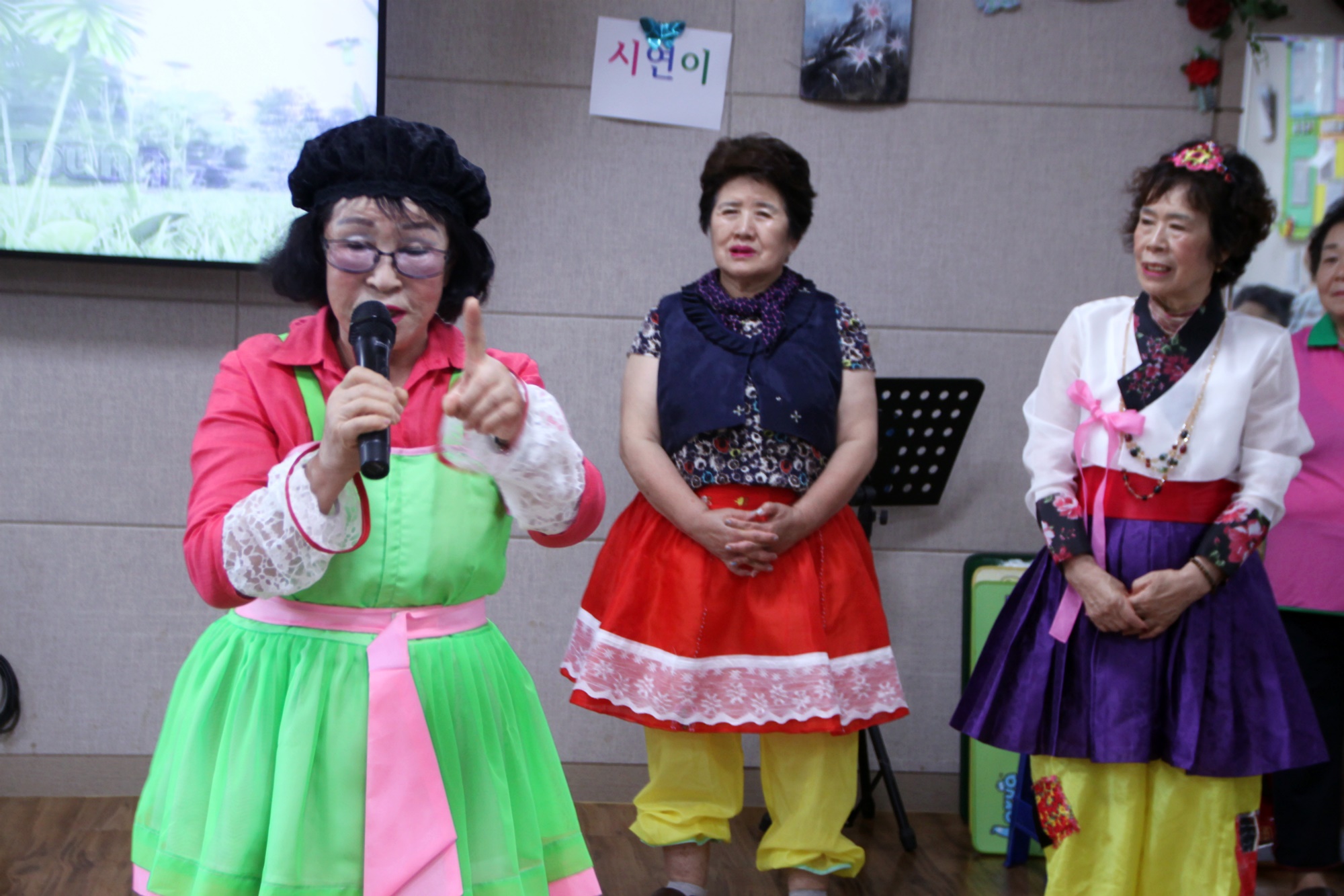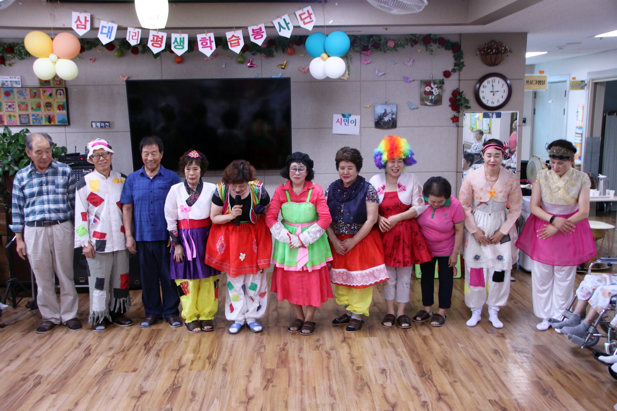 이필여 성산면마을평생학습지부장과 품바 강사님 그리고 회원들께서 고령영생요양원을 방문하셔서 매달 어르신들에게 웃음치료, 하모니카연주, 아코디언연주, 품바타령, 부채춤, 재미난 입담과 웃음을 주고 계십니다. 11명이라는 많은 봉사단이 오셔서 어르신에게 웃음꽃을 주셨네요 한번 웃을때 마다 수명이 하루 늘어난다고 합니다. 웃음전도사를 하고 계시는 삼대1리평생학습품바봉사단 여러분께 감사드립니다.