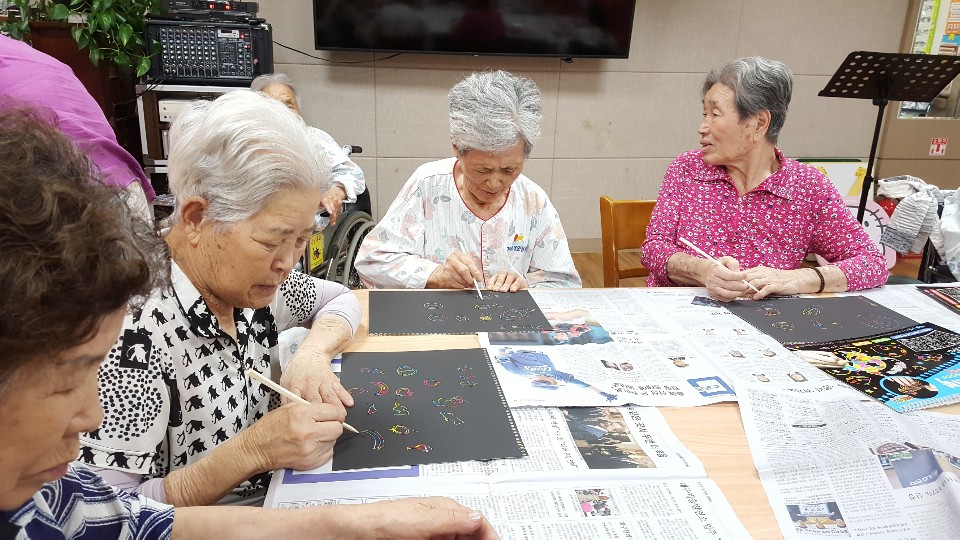 동화를 통해 표현력과 집중력, 기억력을 증진 하여 건강하고 즐거운 생활을 유지드리고자 고령도서관에서 4월부터 20회차로 어르신을 위한 동화구연시간을 주셨습니다 매주 화요일 오전 10시~ 11시까지 이원주 강사와 함께 동화도 들으며 만들기와 손체조등 다양한 활동을 전개 합니다. 요술항아리 동화책을 읽어주시며 어르신들의 소원이 무엇인지를 물으심 나는 죽기전 사흘이 주어 지면 좋겠다 죽는 준비를 하게 하시는 분과 아무것도 바라는것이 없어요 하시는 분 돈이 나오면 좋겠다고 하시는분들이 있으셨네요 요술항아리 동화를 읽고 활동으로 스크레치(요술그림놀이)를 준비 해주셨습니다. 어르신들 다양하게 그림을 표현해 주시네요 이름도 적으시고 , 원하시는 그림도 그리시고 까만 종이에 쓱쓱 막대로 문지르니 알록달록 그림이 나타나자 신기하고 재미있으신가 봅니다. 재미있는 활동을 어르신과 즐거운 시간을 보냈습니다. 늘 어르신을 위해 새로운 활동과 동화를 준비해 주시는 이원주 선생님 감사드립니다. |