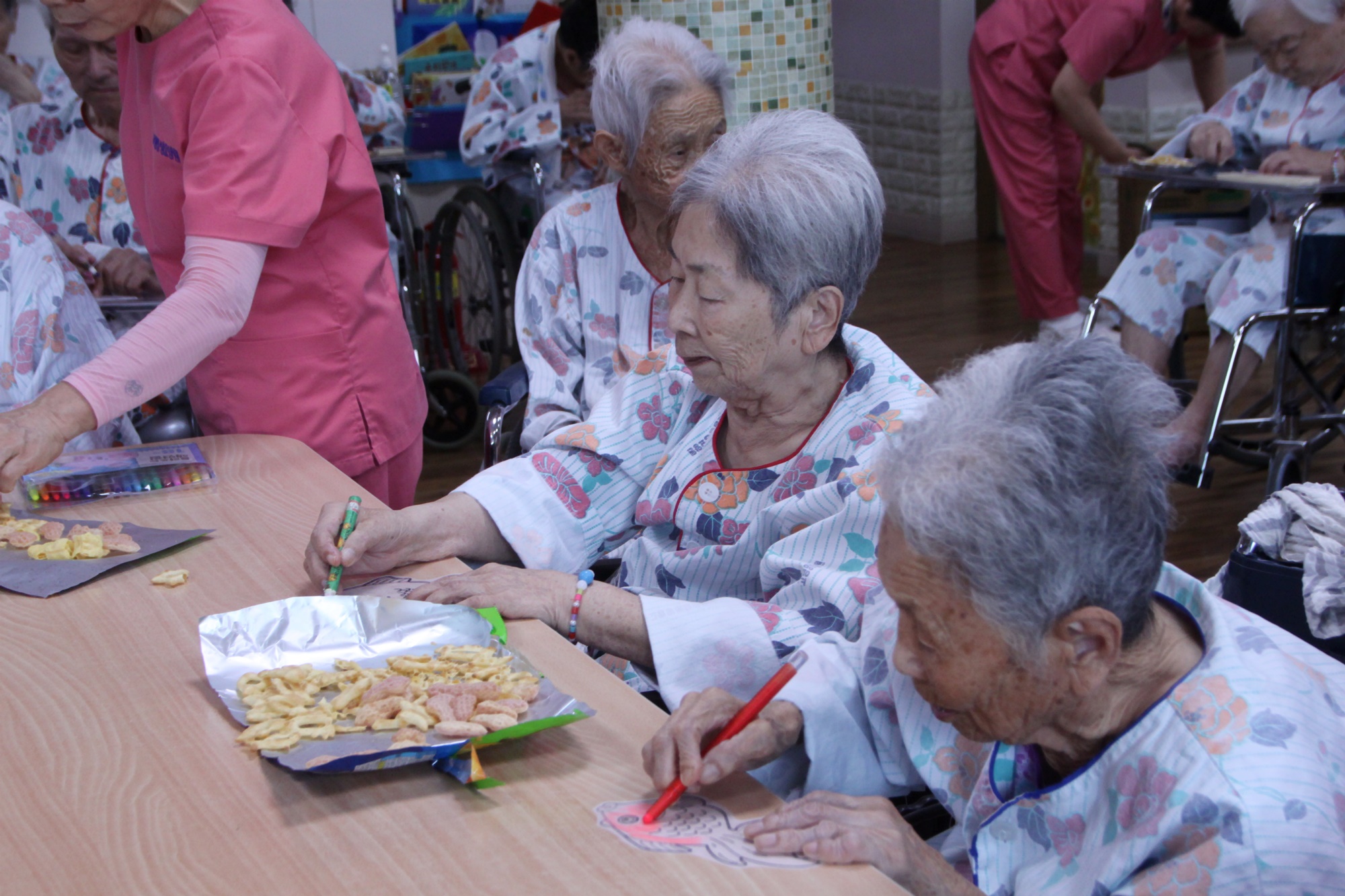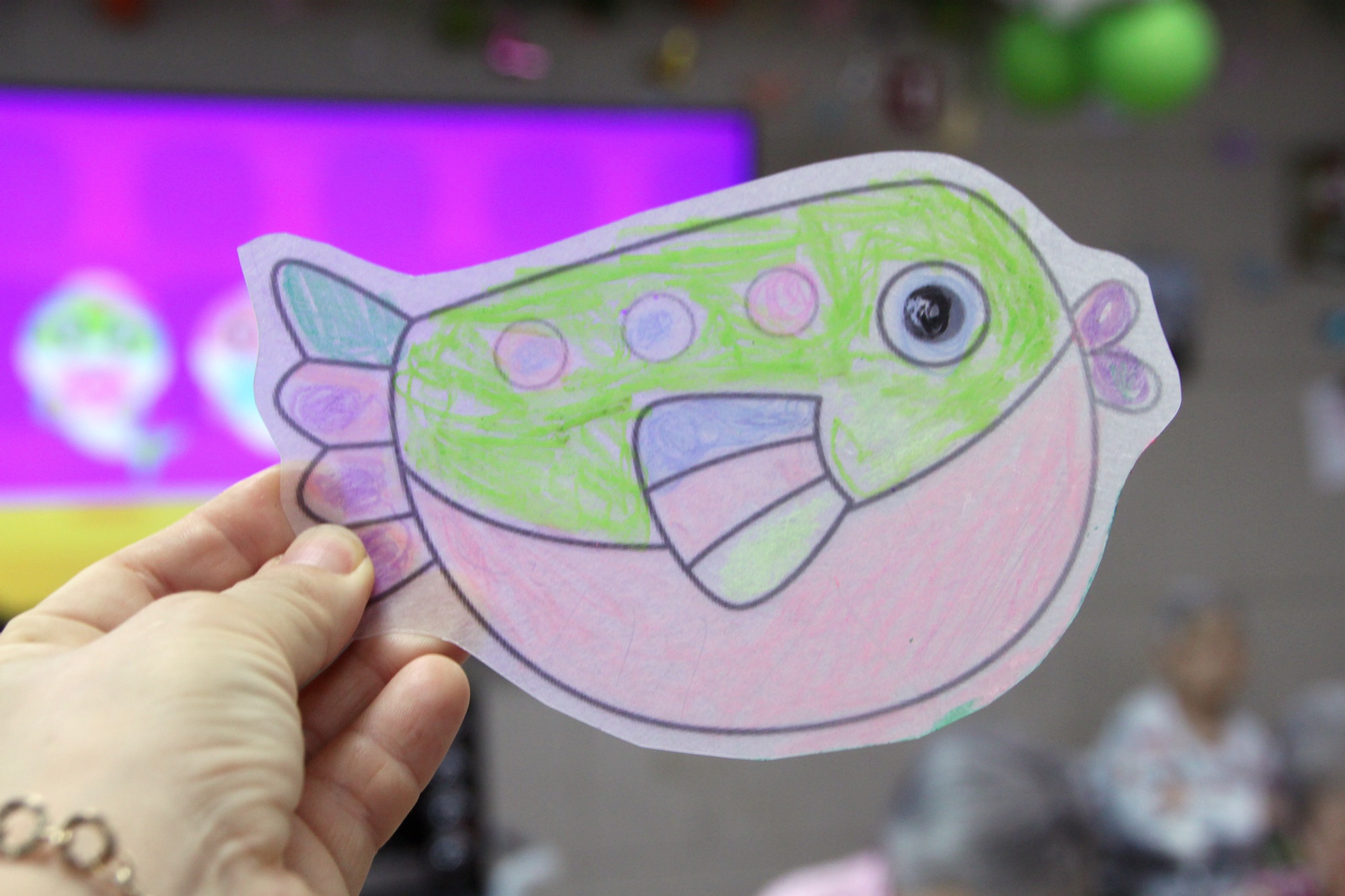 바닷속 동요모음집을 들으며 상어노래를 부르며, 슈링클스 도안을 어르신들에게 나눠드리고 색칠을 하도록 유도드립니다. 색칠을 하면서 인지력 쑥쑥 어르신들이 좋아하는 색을 선택해 알록달록 색을 칠해요 입도 심심하다~~ 하실것 같아 미리 고래과자등을 준비해두었더니 역시나~~ 입도 심심하다 하셔서 고래 과자와 오징어 과자를 모여드리며 물고기 이야기를 하며 과자를 맛나게 먹으며 색칠을 합니다. 색칠한 슈링클스 요술종이를 오븐에 넣어 오징어를 굽듯이 구워드렸더니 신통방통하다 하시며 딱딱해진 그림을 보시고 즐거워 하셨습니다. 만든 물고기를 나뭇가지에 연결해 바닷속 물고기 모빌을 만들어 엘리베이트에 걸어 두어 위층 아랫층 오미가미 시원한 여름을 연상하도록 장식해 두었습니다. 어르신들 소감 한마디~~ 바닷속에 헤어치는것 같아 시원한 프로그램을 했다 , 입도 즐겁고 손도 즐거웠다하시며 소감을 말씀해주셨습니다. |