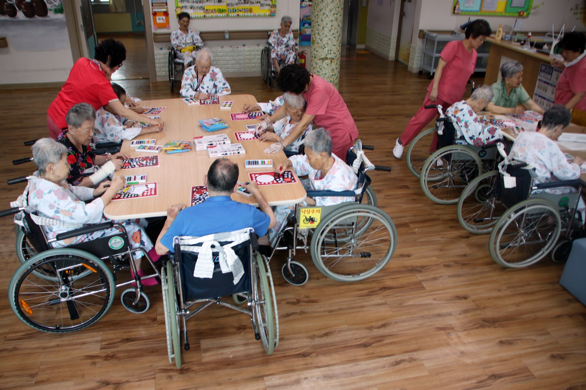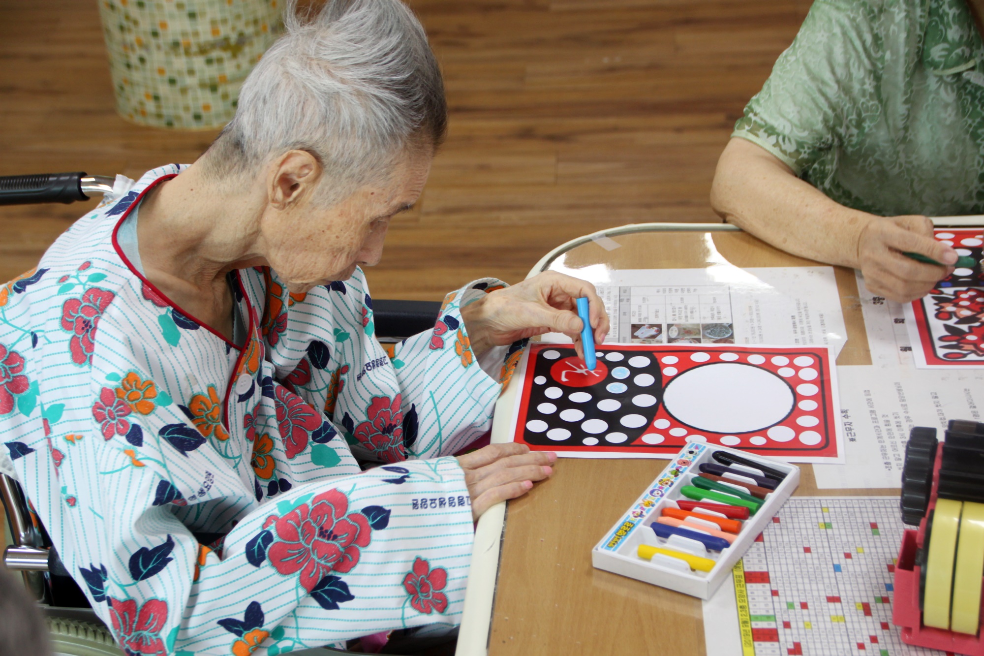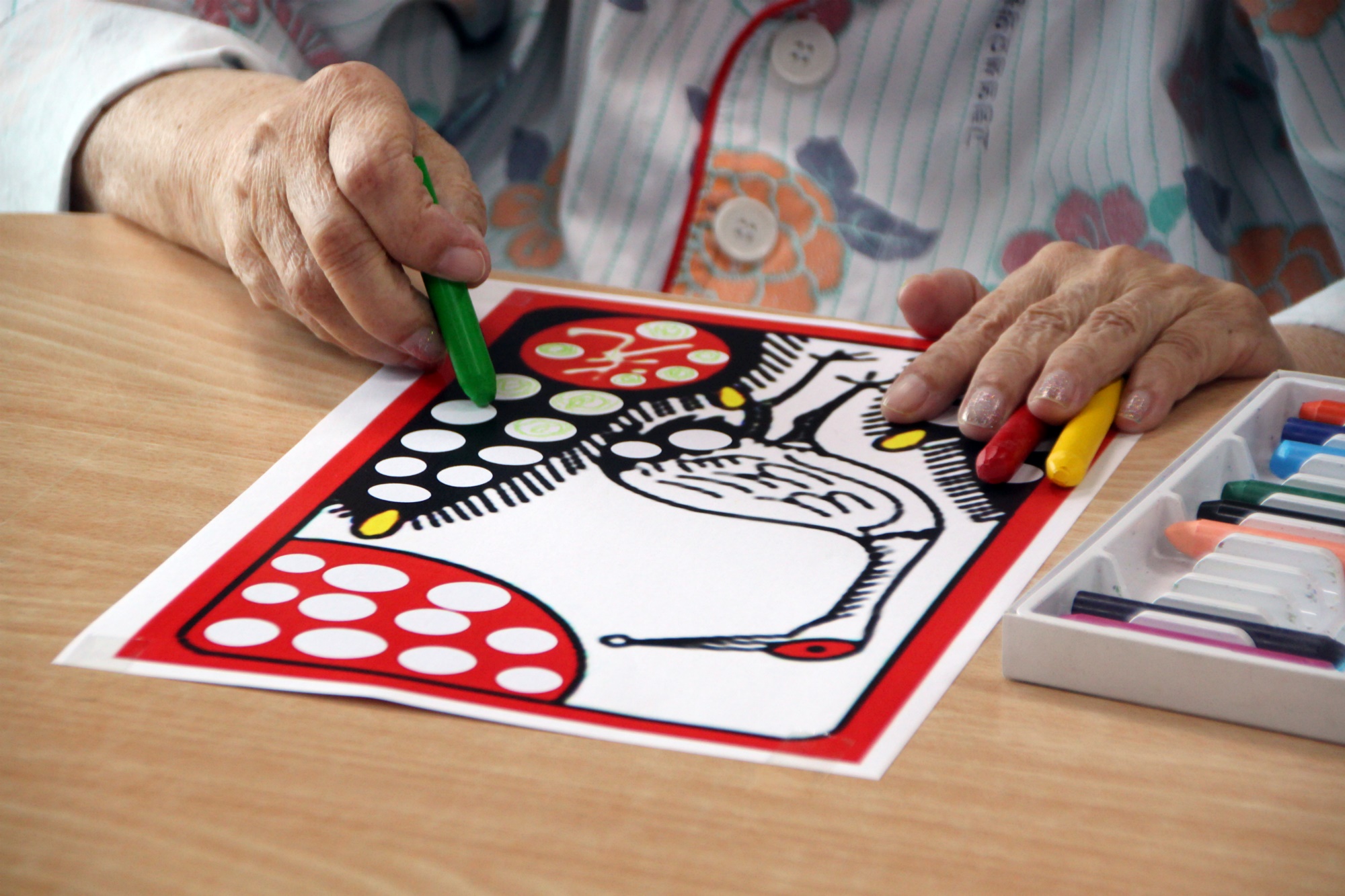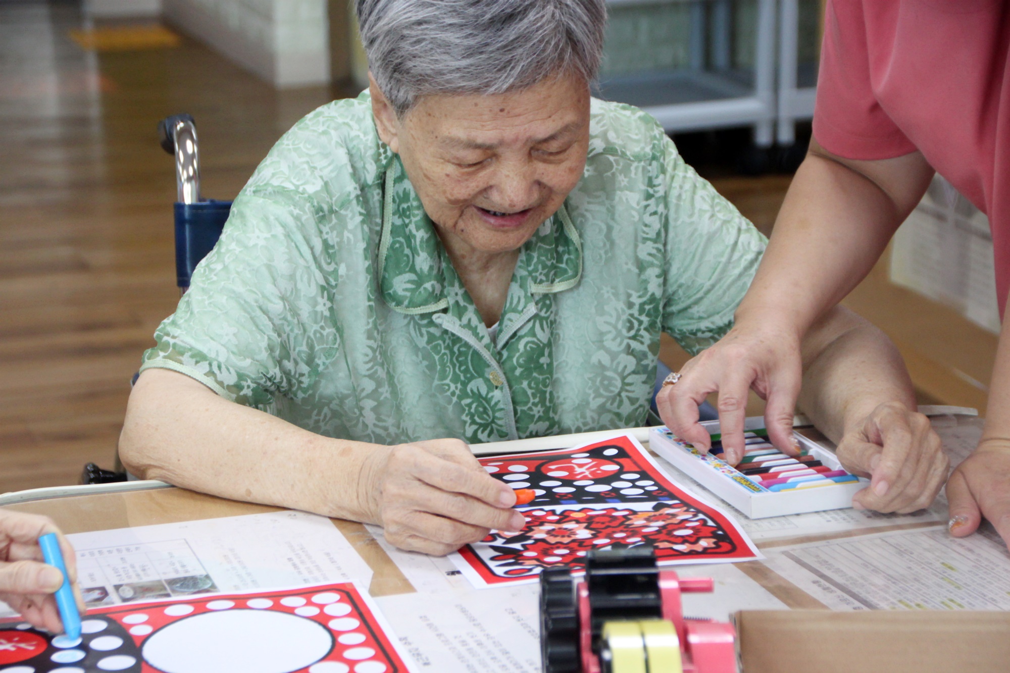 일상생활에서 쉽게 접할 수 있던 화투 놀이에서 자주 볼 수 있었던 그림의 의미와 뜻에 대해 생각할 수 있으며 친근감 있는 이미지를 직접 꾸며 자신의 작품으로 완성하여 성취감을 가질 수 있다. 또한 어르신들이 직접 빈칸에 색을 채우는 활동을 통해 손 근육, 안면근육 이용을 유발하고 활발하게 하여 치매예방에 효과를 줄 수 있다. 또한 친근감 있는 화투채우기 미술 활동 과정을 통하여 다양한 감정을 표현하며 불안과 우울증 완화에 도움을 드렸습니다. 종이를 고르게 해드리며 일광은 생명을 오래~~ 삼광은 아름다운 삶을 팔광은 좋은 피부로 밝게 똥광은 돈을 많이 버신다고 비광은 사람관계가 좋아 손님이 많이 찾아오신다고 하니 웃으심 |