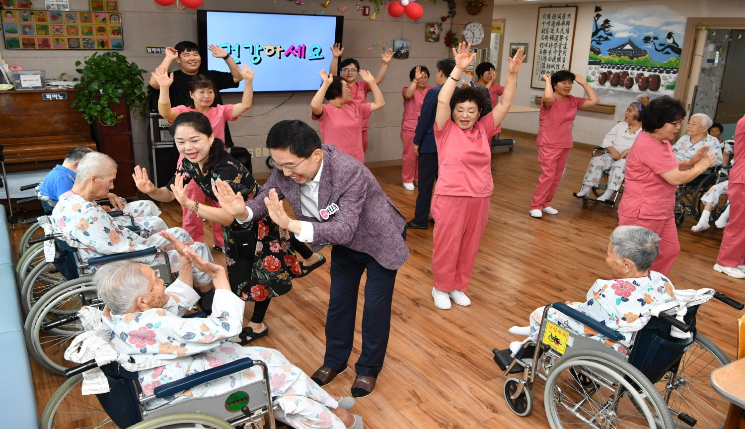 추석을 앞두고 어르신을 위한 따뜻한 방문이 이어졌습니다. 지난 3일(화) 오전 10시 임종식 경북도교육감을 비롯한 윤석찬 고령교육장 등 교육관계자 10여명이 방문, 어르신과 환담 나누는 등 인사하는 시간을 가졌습니다. 이날 임 교육감은 오전 사회복지 프로그램인 ‘어르신 건강체조’에 동참하는 등 어르신과 함께 즐거운 체조 시간을 가지기도 했습니다. 또한 경북도의회 박정현 도의원은 5일 오전 11시 의회 관계자와 함께 어르신께 인사하고 건강을 당부했습니다. 민족 고유의 명절인 추석을 맞이해 따뜻한 마음을 베풀어주신 두 분께 진심으로 감사드립니다. |