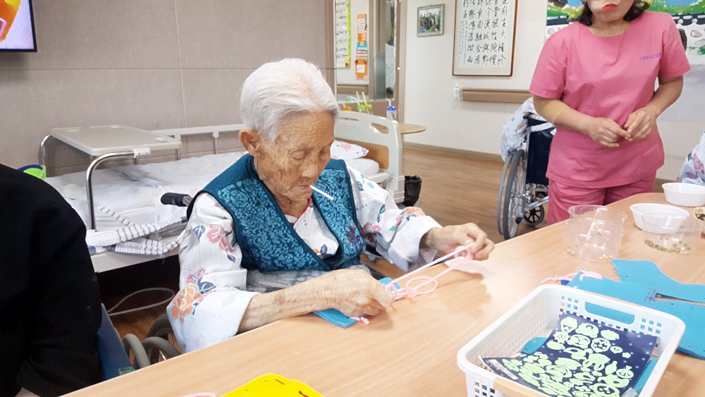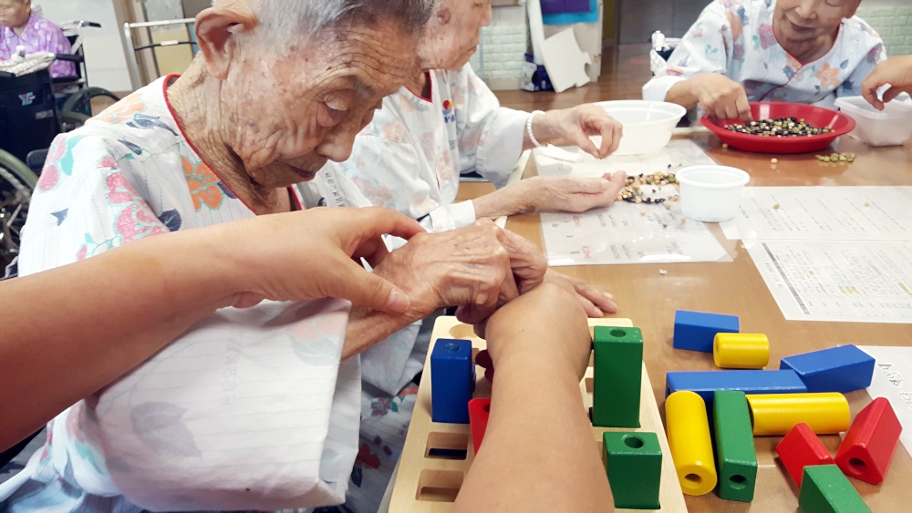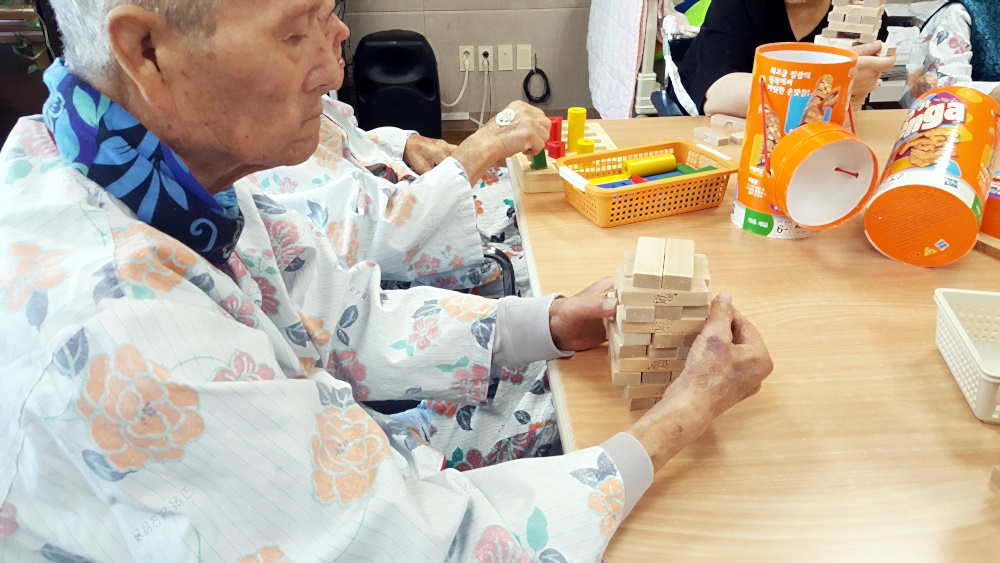 다양한 작업활동으로 어르신들이 좋아하시는 교구활동을 하는 시간입니다. 소근육 활동 인지력 쑥쑥 어르신들은 콩고르기를 유독 좋아하시고 젠가의 달인 류00 어르신 콩고르기의 달인 전00 어르신 박00어르신 바느질의 달인 시00 어르신등 어르신에 맞는 활동으로 즐거운 시간을 가졌습니다. |