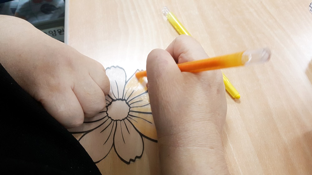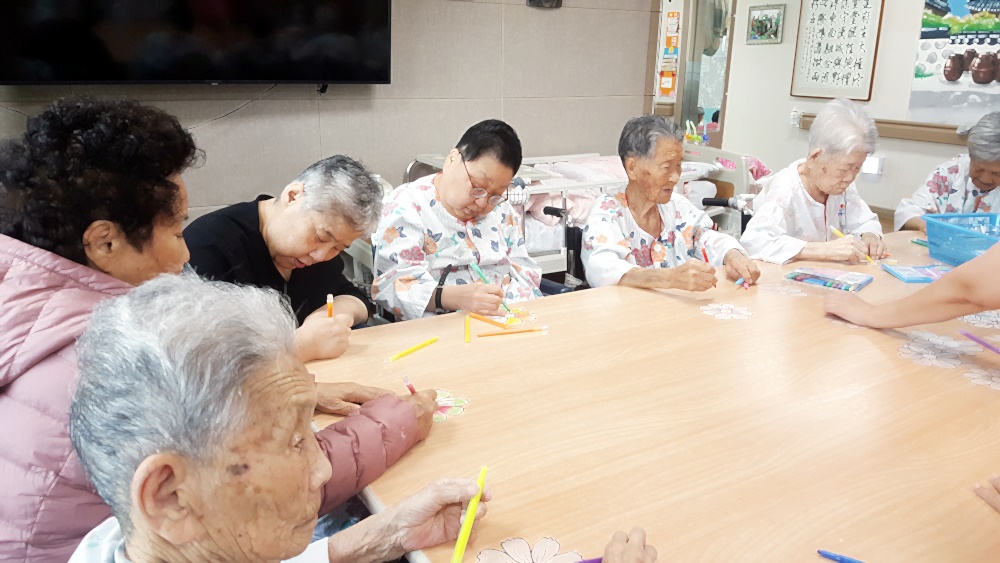 바람이 살랑살랑 불면 코스모스가 한들한들 흔들립니다. 아무리 비바람이 와도 코스모스는 부러지지 않고 곧곧하게 서 있죠 본 요양원에 입소하신 어르신들도 늘 코스모스처럼 한들한들 굳건하게 건강을 유지 하시라고 슈링클스를 이용한 코스모스 핀 만들기를 했습니다. 어르신들 좋아하시는 색으로 색칠도 하시고 슈링클스가 쪼그라 들어 작아지는 모습에 신기해 하시며 머리에 핀을 꼽아 드렸더니 이쁘다고 좋아들 하십니다. 너도 나도 머리에 코스모스 핀을 꼽고 한들한들 기분도 즐거워 지십니다.