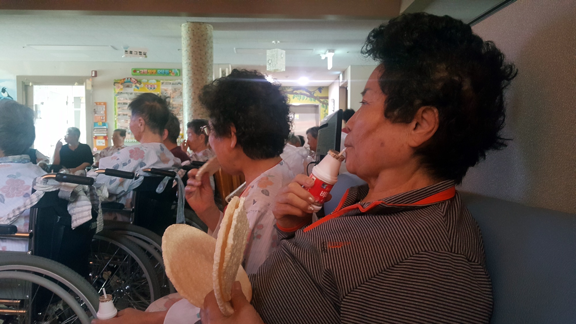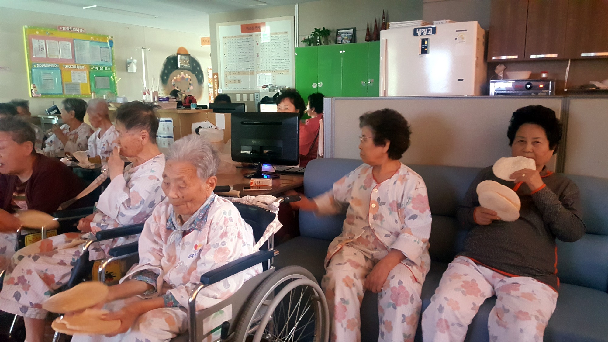 유튜브 영상을 이용해 어르신들과 움직이는 영상동화를 듣는 시간 시대의 변화에 따라 어르신들 프로그램도 유튜브를 이용해 보여드립니다. 그냥 들려 드리는 동화도 좋아하시지만 재미있는 그림 영상이 나오는 동화를 좋아들 하십니다. 오늘은 개와 고양이 , 콩쥐와 팥쥐, 복타러간 총각, 며느리감 구하기 를 보여드렸습니다. 어르신들 호흥도가 좋은 동화영상 시간입니다 준비된 뻥투기 과자와 비피더스 간식으로 맛나게 드시며 시청하셨습니다. |