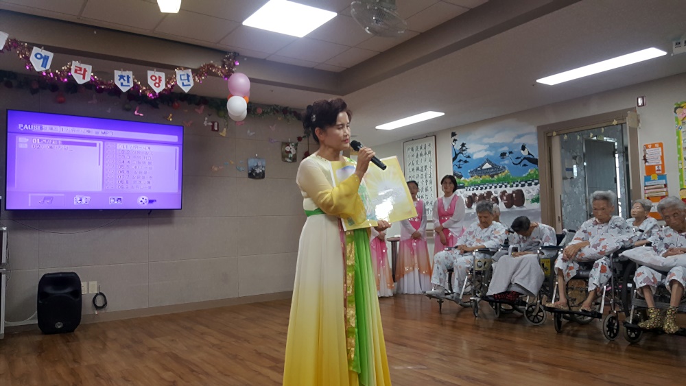 이애라찬양단이 오셔서 어르신들에게 힐링의 시간을 주셨습니다. 다양한춤과 댄스로 어르신들에게 즐거운 시간을 주신 이애라 찬양단에 감사드립니다 |