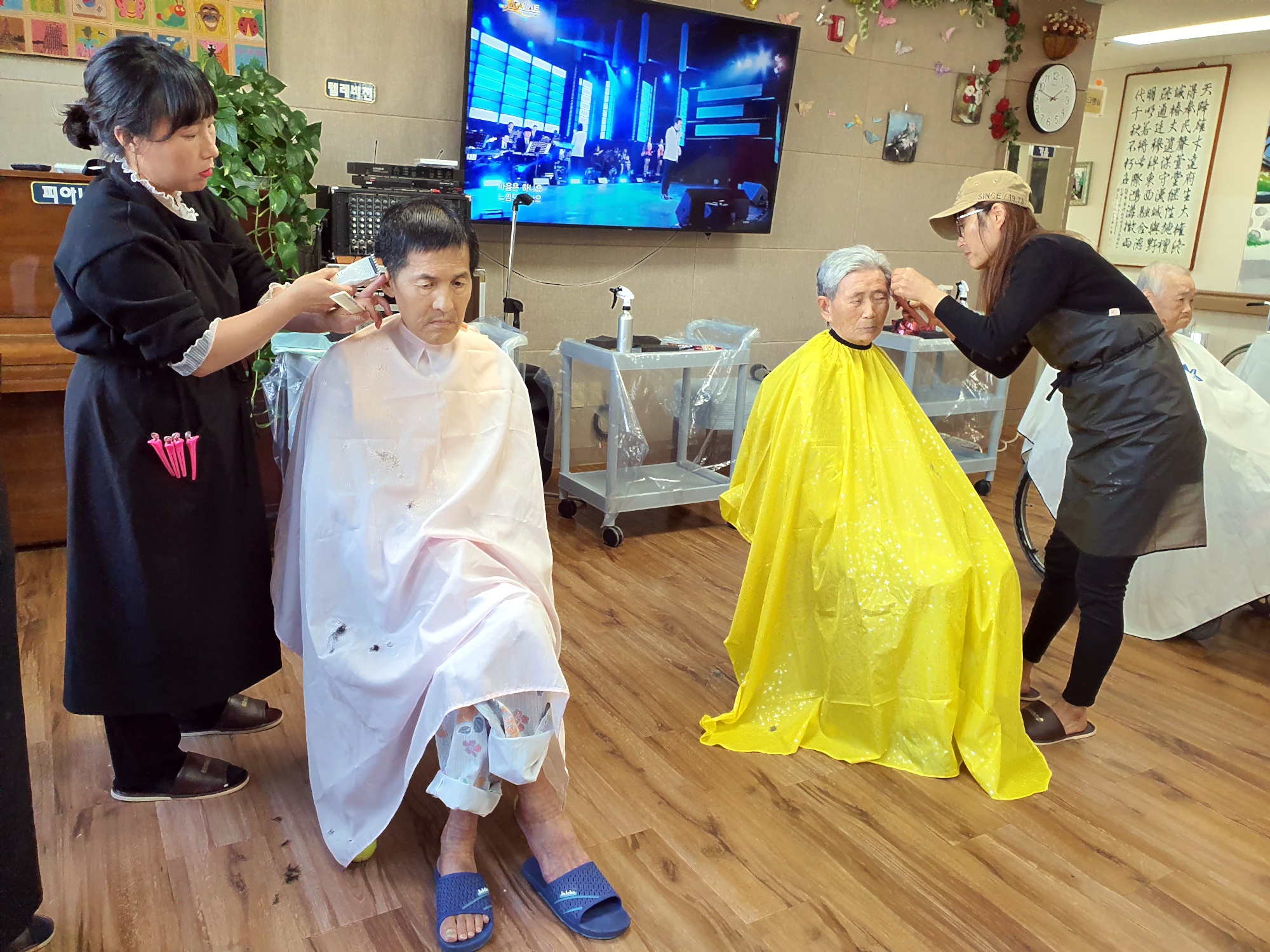 어르신들의 이미용을 위해 대구 땅끝 선교단에서 오셔서 귀한 시간을 주셨습니다. 트로트 음악을 들으시며 어르신들 까끔하게 이미용하시고 상쾌한 기분을 느끼셨네요 감사드립니다. |