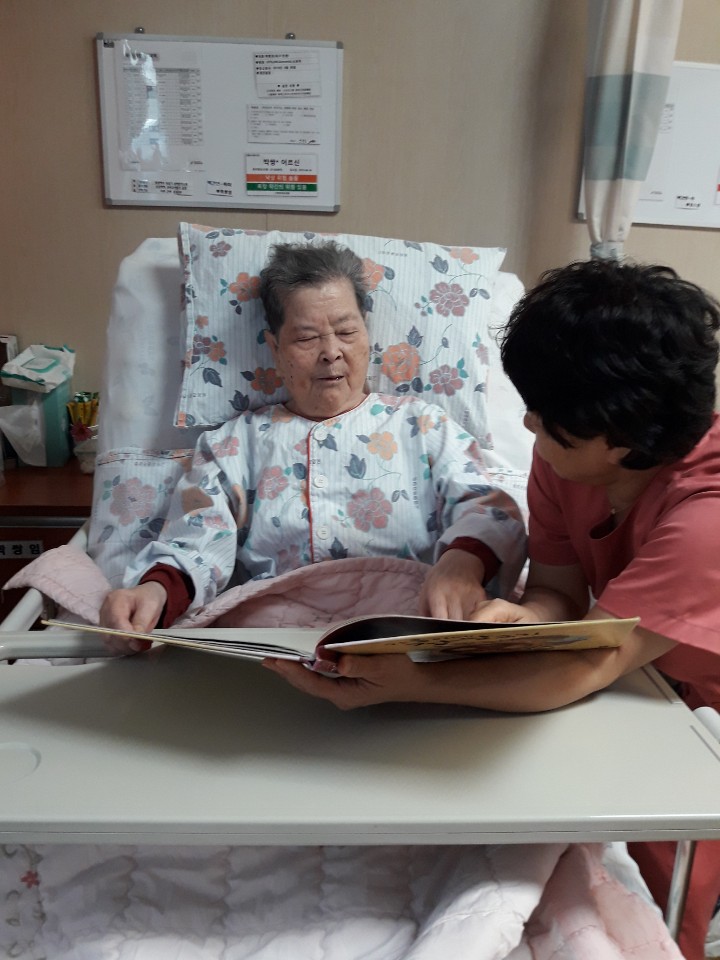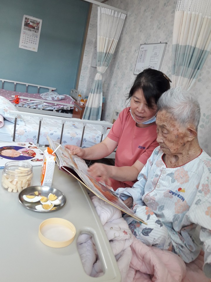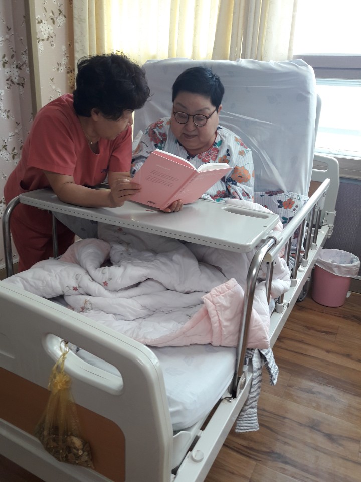 어르신과 함께 책읽는 시간은 유대감을 형성하고 관계를 완화시켜 줍니다. 신00 어르신은 아들이 사다주신 책을 읽으며 여가를 즐기시고 계시는 모습~~ 책은 마음의 양식입니다. |