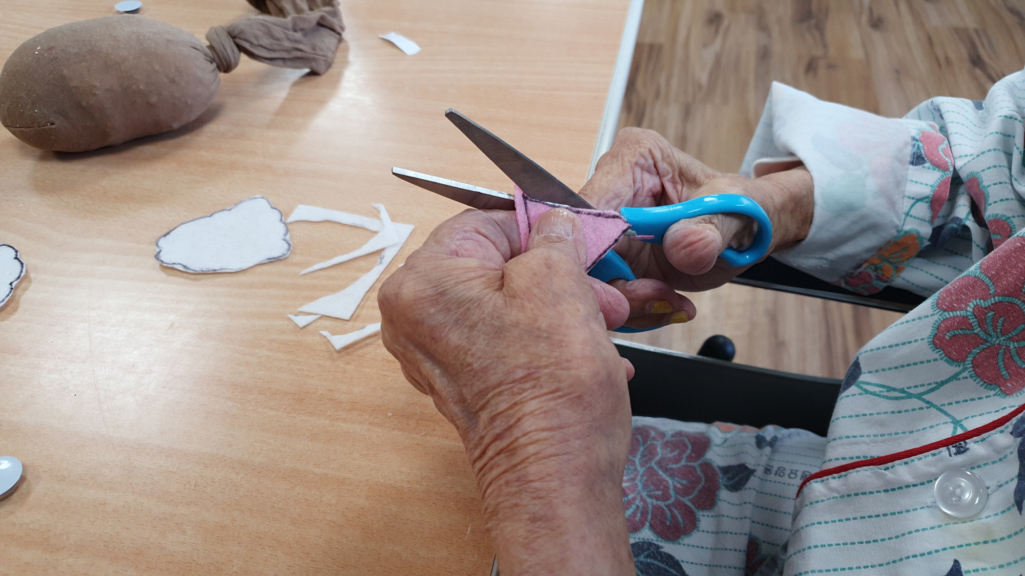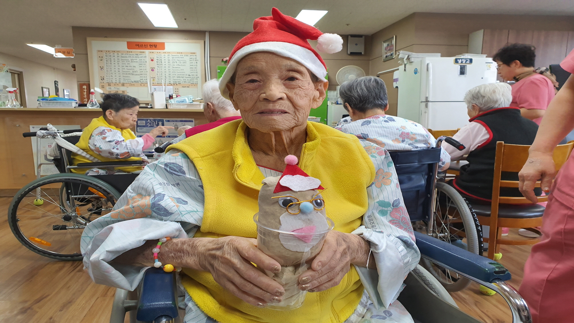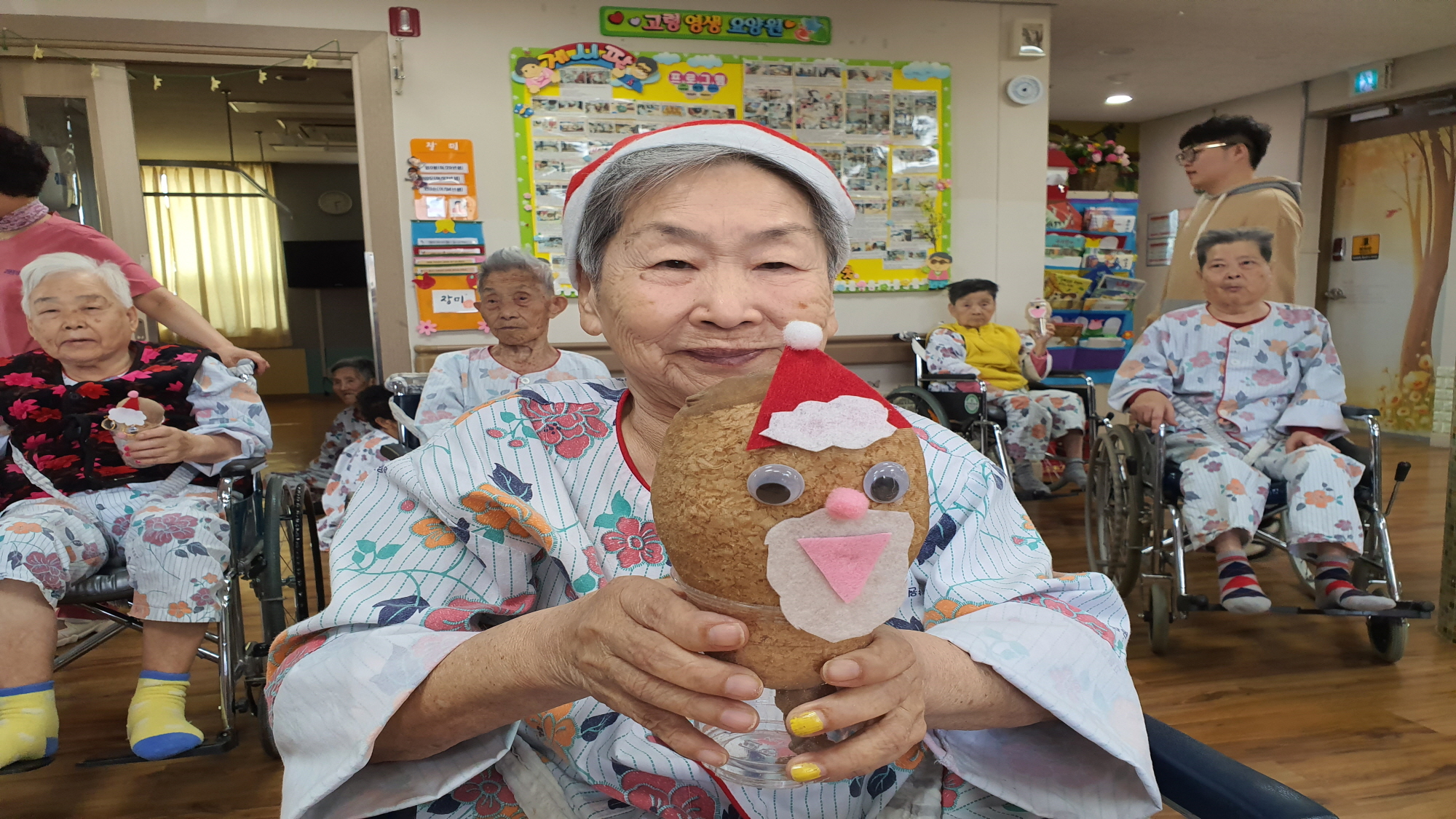 창의성과 표현력 향상 및 자존감 향상/성취감 및 책임감 부여/생명에 대한 소중함 기대/ 의사소통 능력 향상는 프로그램 편백나무 톱밥을 이용하고 와이어로 안경도 만들고 물에 손을 푹 담궈 물놀이도 하며 ~~ 잔디인형을 완성했어요. 편백나무 톱밥 향이 좋다고 하시고 잔디를 물에 푹 담궈주니 재미있다고 하셨음 산타모자를 쓰시고 만드신 산타 잔디 인형과 함께 찰칵 만든 산타 인형 어르신들과 붕어빵입니다. |