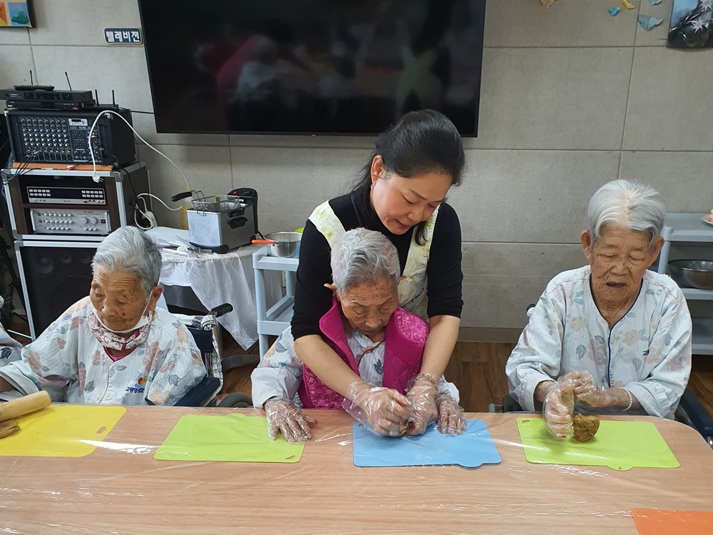 정월대보름은 음력 정월보름날을 말하며 개인적인 기복 행사인 부럼깨물기, 더위팔기, 귀밝이술 마시기나 집단의 이익을 위한 줄다리기, 다리밟기, 고싸움, 돌싸움, 쥐불놀이 등 행사를 하는 명절로 설날과 추석 만큼 큰 날입니다. 요양원에서 어르신들과 요리를 준비했습니다 잣 을 이용해 약과를 만들어 보는 시간을 가졌습니다. 요리를 만드시며 소근육활동과 반죽을 잘 하시고 틀에 모양을 잘 만들어 내심 만든 음식을 맛보시며 정월대보름놀이했다고 좋아 하셨습니다. |
