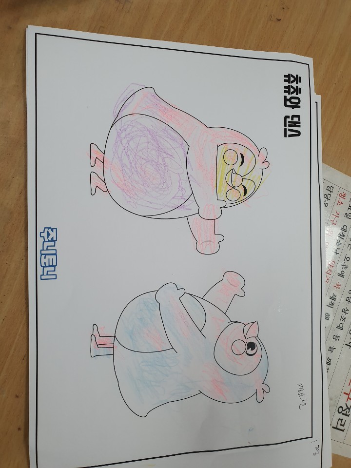 코로나19로 인해 코호트격리중이라 어르신 이동을 최소화하여 각 생활실에서 프로그램 수행하심 펭귄이 즐겁게 웃는 얼굴을 하고 있는 도안을 나눠드렸더니 귀엽다고 하시면 다양한 색으로 색칠을 수행하셨습니다. |