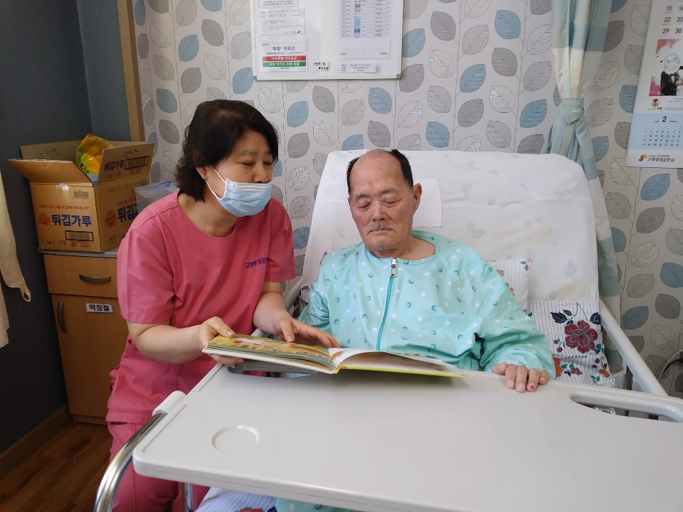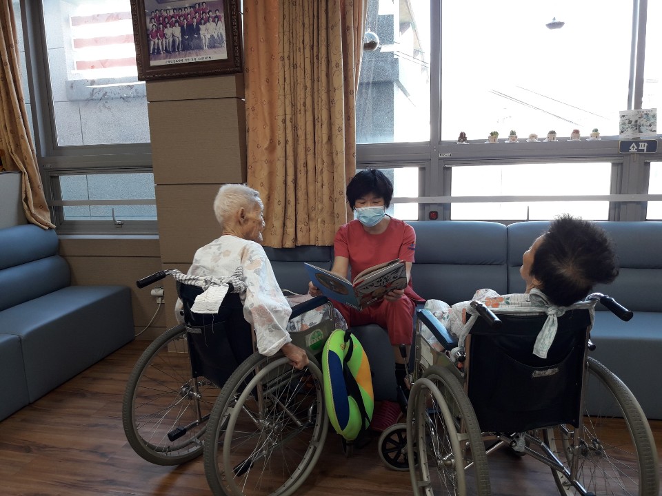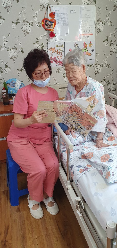 코로나19로 코호트격리중이지만 모든 직원들이 철절하게 관리를 해서 음성 판정을 받았습니다. 그래도 어르신 책을 읽어 드릴때 케어를 할때는 철저하게 마스크를 착용하고 손을 씻고 케어를 드리고 있습니다. 적적하신 어르신을 위해 프로그램은 쭉 이어집니다. |