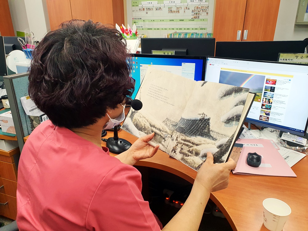 손유민과 함께 하는 동화시간 호랑이가 준 보자기와 도깨비 이야기 책을 방송을 통해 동화구연을 해주셨습니다. 코로나 19로 인해 프로그램실에서 프로그램진행을 하지못하고 각 생활실에서 동화구연을 들으셨는데요 어르신들 텔레비젼을 끄시고 집중해서 동화를 들으셨습니다. |