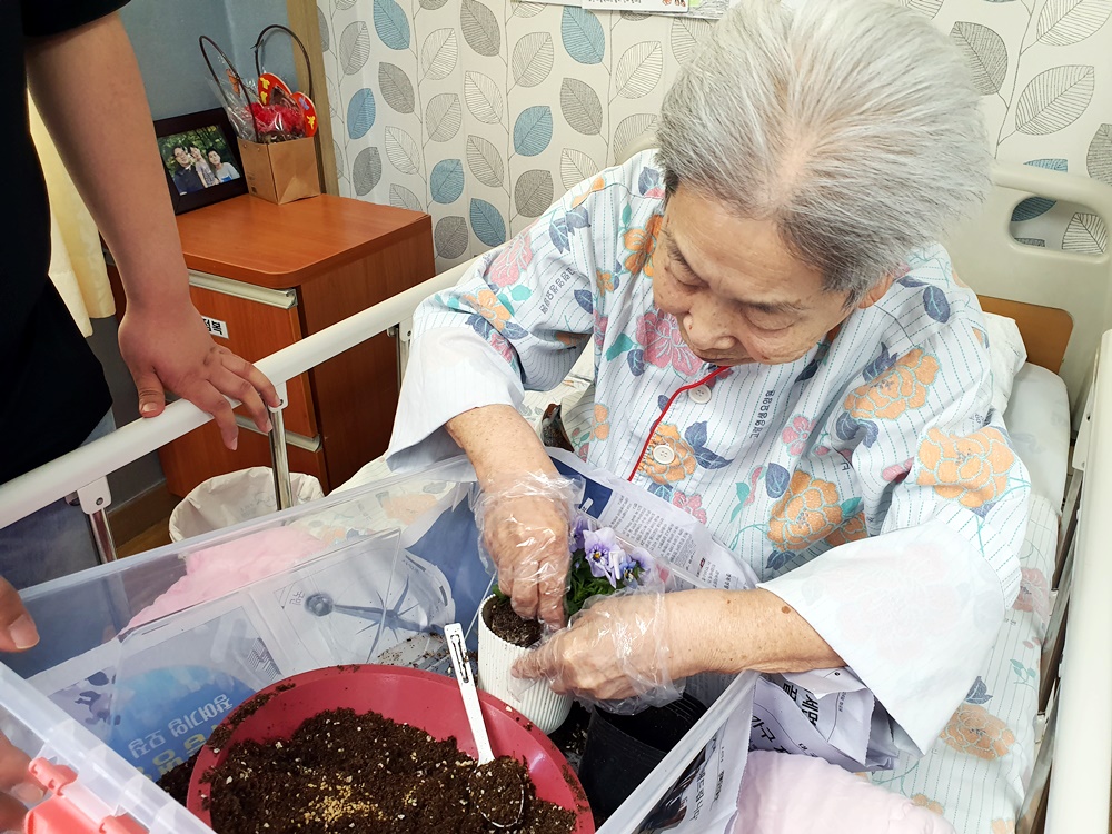 | 코로나 19 예방으로 면회가 힘들어 어르신들의 모습이 궁금 하실듯해 원예활동 사진을 올려드립니다. | |||