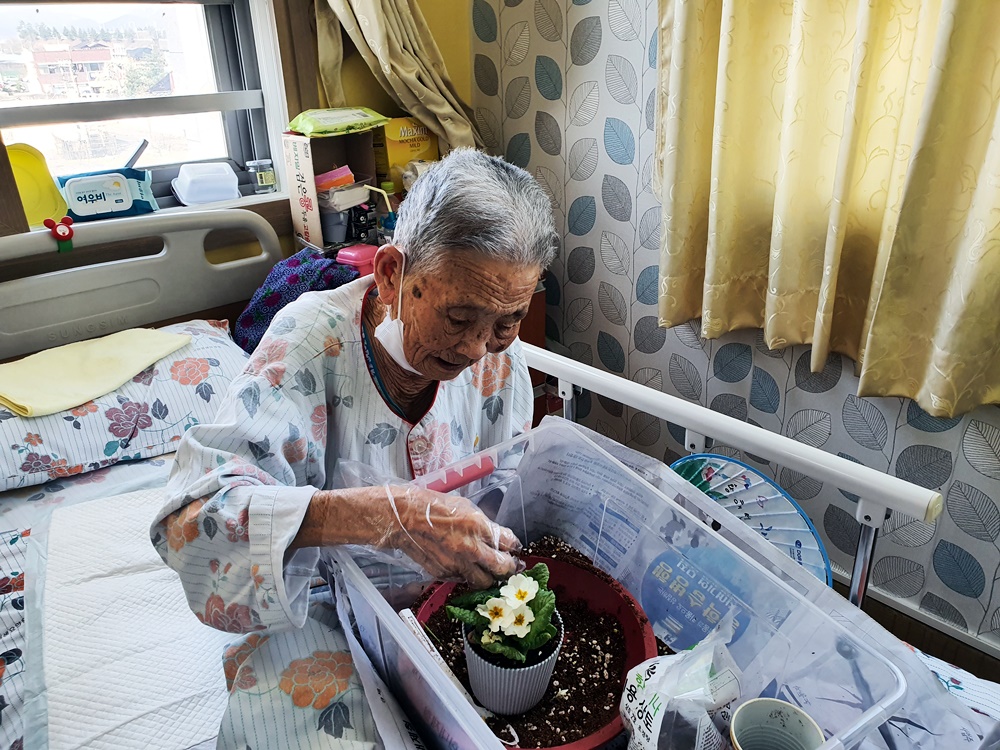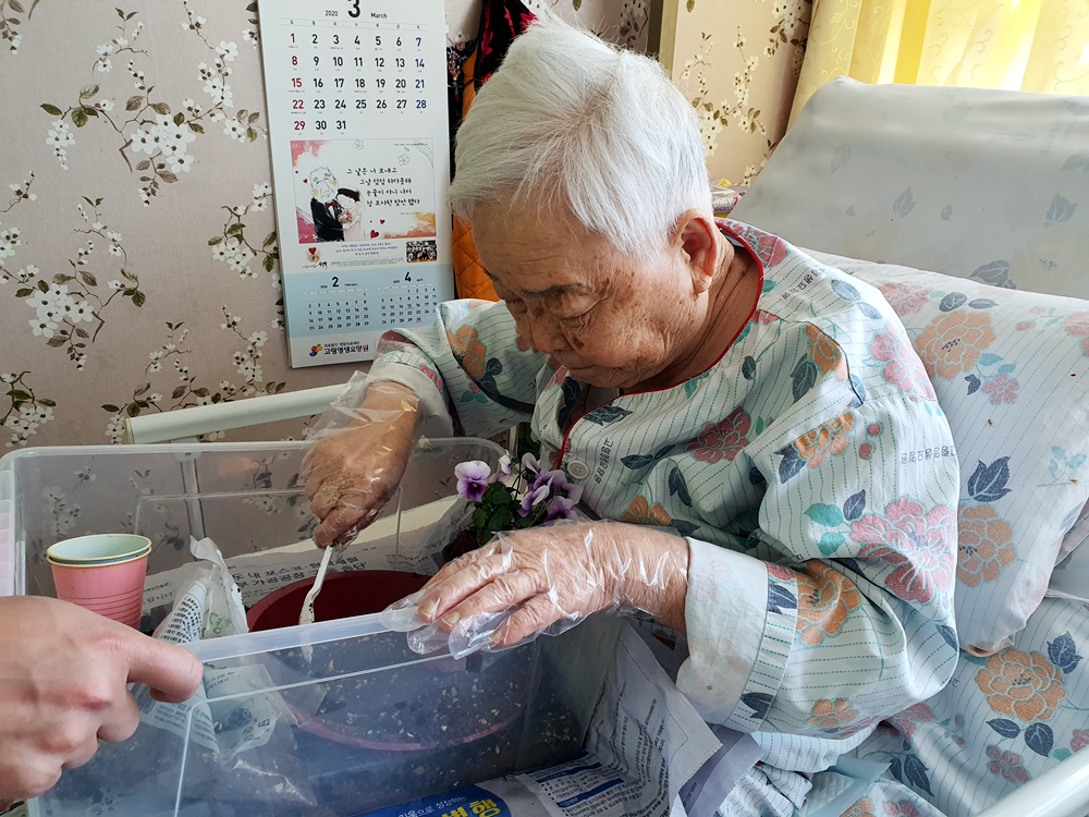 | 코로나 19 예방으로 면회가 힘들어 어르신들의 모습이 궁금 하실듯해 원예활동 사진을 올려드립니다. | |||
