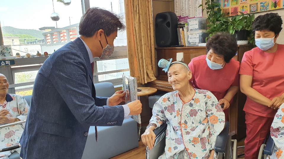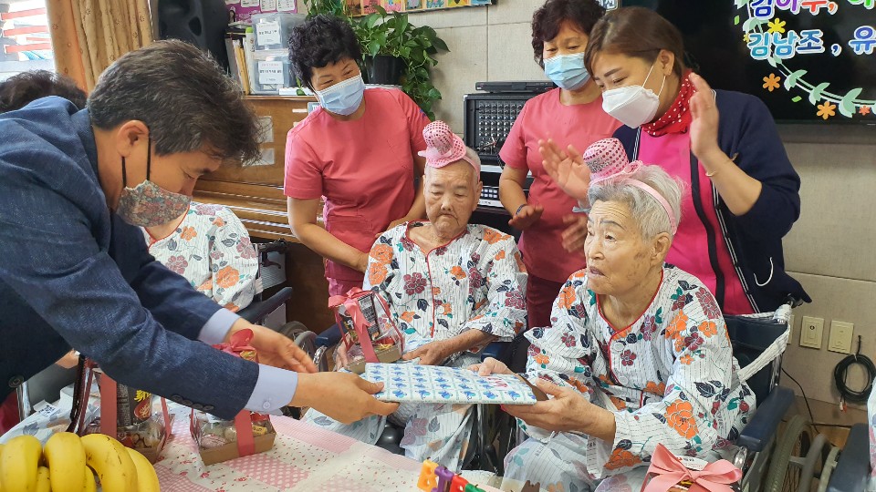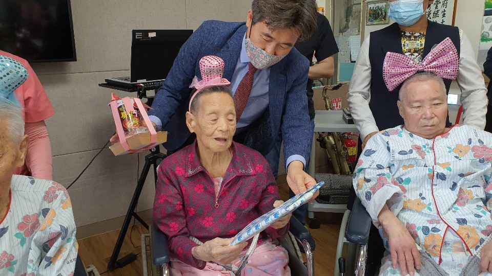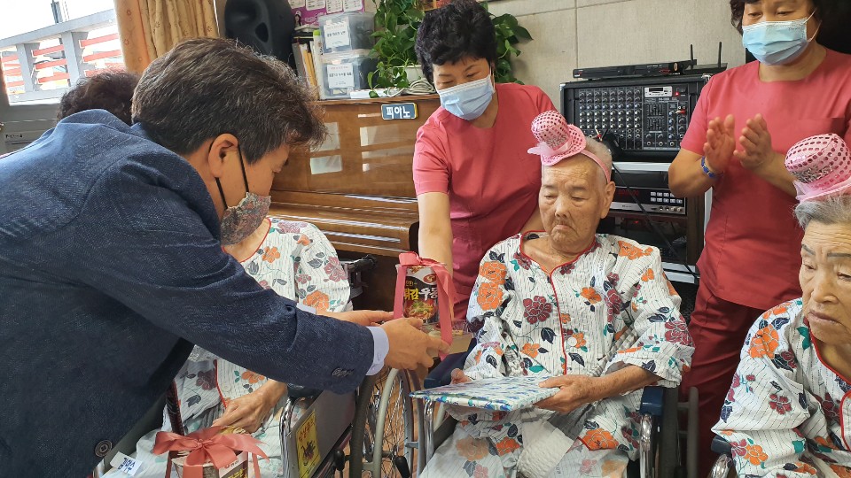 생신을 맞으신 7 명의 어르신들과 함께 생신잔치를 준비 했습니다. 김요00, 유00, 백00, 김00, 이00, 진00, 김00 어르신 3월과 4월 탄생어르신의 생신을 준비했습니다. 코로나 19로 3월 생신을 진행 못드리고 4월 생신어르신과 함께 드렸으나 가족의 참여는 불가피해 요양원 직원들과 흥겨운 시간을 보냈습니다. 여름에 입으시도록 시원한 모시메리를 준비 했으며 어르신 개인간식도 함께 선물로 드렸더니 좋아하셨습니다. 빨리 코로나 19가 종식되어 어르신들이 가족과 함께 참여 하실 수 있기를 소망합니다. |