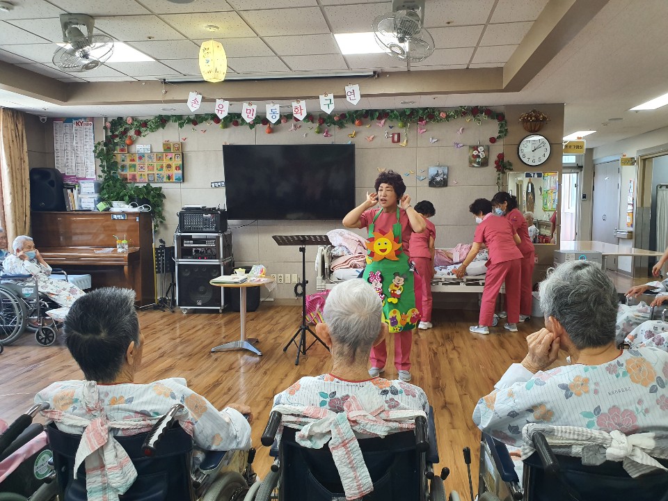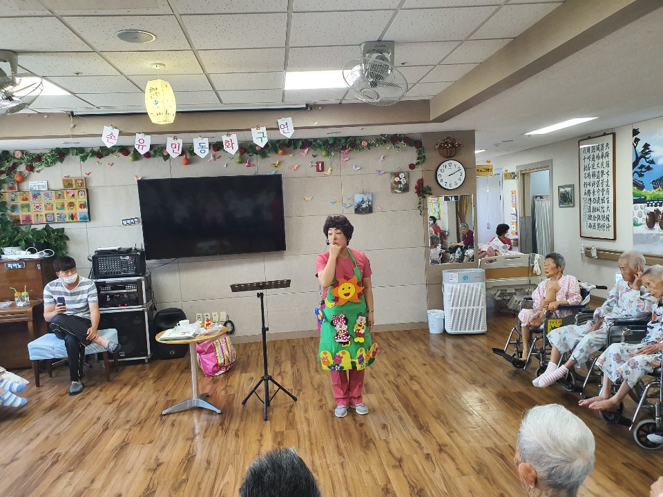 손유민과 함께 하는 동화시간 전래동화책을 방송을 통해 동화구연을 해주셨습니다. 재미있는 손유희와 어르신들 인지 체조까지 함께 해주셔서 어르신들 호흥도가 좋으십니다. |