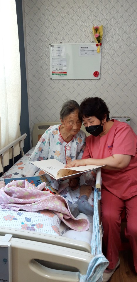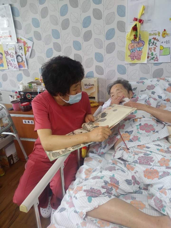 일부 어르신은 1층에서 원예활동 참여 하시고 그 외 어르신은 생활실에서 선생님들 |