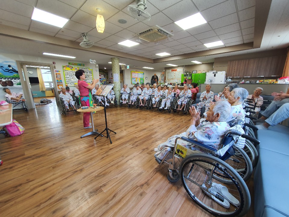 손유민과 함께 하는 동화시간 전래동화책을 동화구연을 해주셨습니다. 재미있는 손유희와 어르신들 인지 체조까지 함께 해주셔서 어르신들 호흥도가 좋으십니다. 밥안먹는 색시 빨간부채 파란 부채 이야기를 재미있게 들려 주셨습니다. 어르신의 호흥도가 좋은 시간이었습니다. |