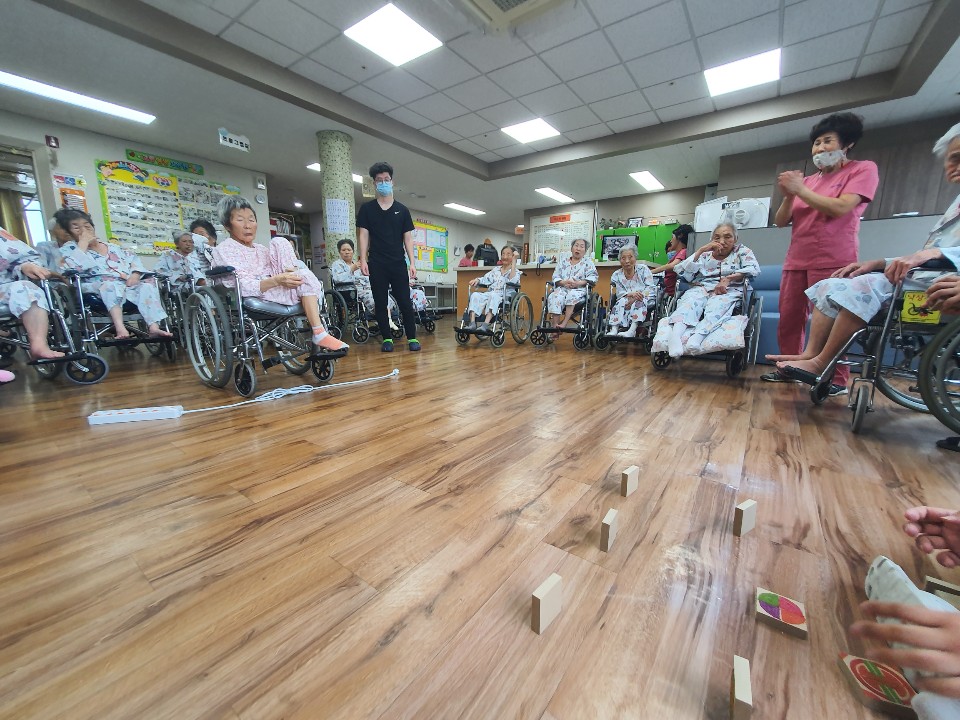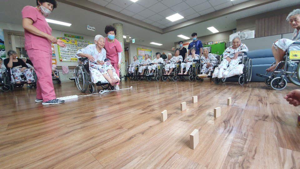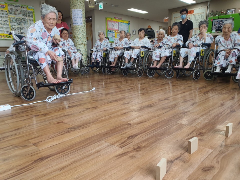 추억의 전통놀이 비석치기 일정한 거리에서 손바닥만한 작은 돌을 발로 차거나 던져서 상대의 비석을 쓰러뜨리는 놀이입니다. 요양원 어르신들께서 직접 나무에 채색을 해서 꾸민 나무비석을 이용해서 일정한 거리를 두고 비석을 쓰러뜨리는 놀이로 어르신들 집중력과 소근육 활동으로 의욕이 넘치는 게임 시간이 되었습니다. 비석을 넘어뜨린 갯수의 반을 사탕으로 선물로 드렸습니다. 오늘의 비석왕은~~ 6개중 5개를 쓰러뜨린 차00어르신~~~입니다. |