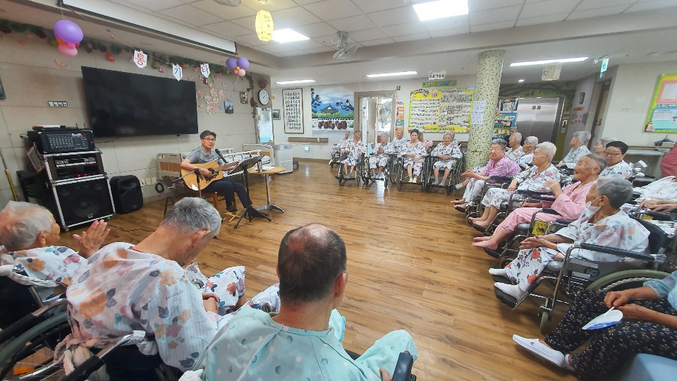 고령영생요양원 김영규 원장님은 매달 어르신에게 추억의 통기타 공연을 준비해 주십니다. 흘러간 옛노래 어르신들이 좋아하는 노래로 추억의 시간을 회상하며 정겨운 시간을 보내십니다. 재미난 입담과 함께 ~~ 귀도 즐거운 시간 추억의 통기타 음악시간으로 들어가 봅니다. |