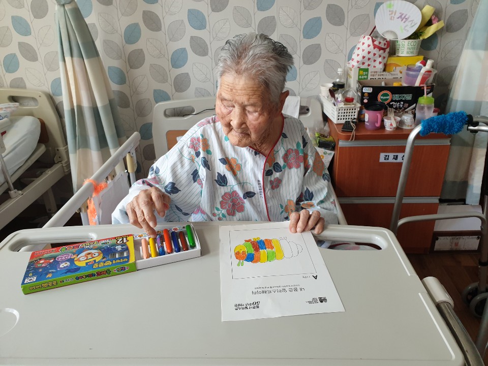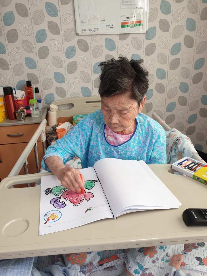 고령영생요양원은 매주 목요일과 금요일은 목욕날입니다. 오전 목욕 후 오후에는 음악을 들으며 손톱과 발톱을 손질하시고 책도 읽고 색칠도 하시며 시간을 보내신답니다. |