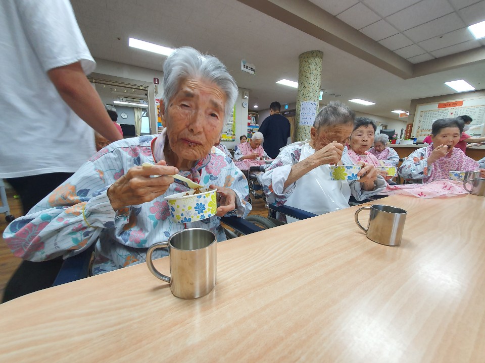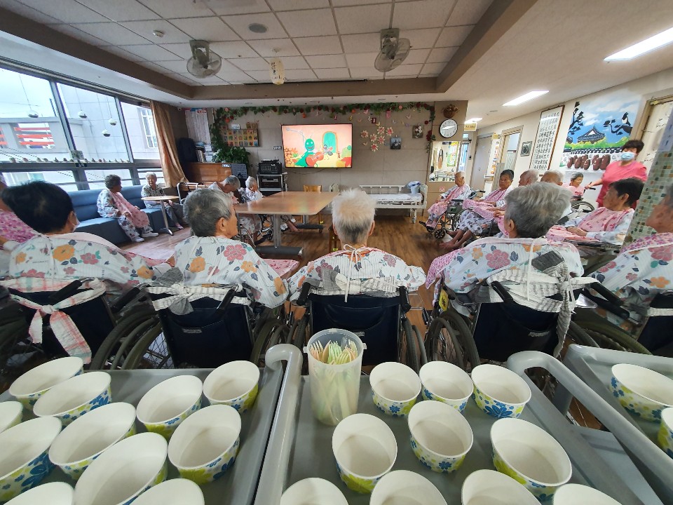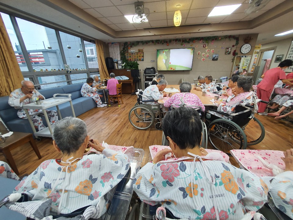 짜장면을 섭취 하지 못하시는어르신을 제외한 프로그램으로 추억의 음식을 드시는 시간입니다. 요양원에서 추억의 음식을 나누는 시간으로 짜장면과 직접만든 식혜를 나눠드시면서 추억을 뒤돌아보는 시간으로 인지향상과 오감을 느끼는 시간이 되셨습니다. 음식을 드신 후 전래동화영상도 보시면 여유있는 시간을 보내셨으며 " 짜장면 정말 맛있게 먹었다 내 이거 어릴때 생일때만 먹어봤는데 ㅎㅎ 딱 그맛이네 " 하시며 추억을 떠 올리는 시간을 가졌습니다. |