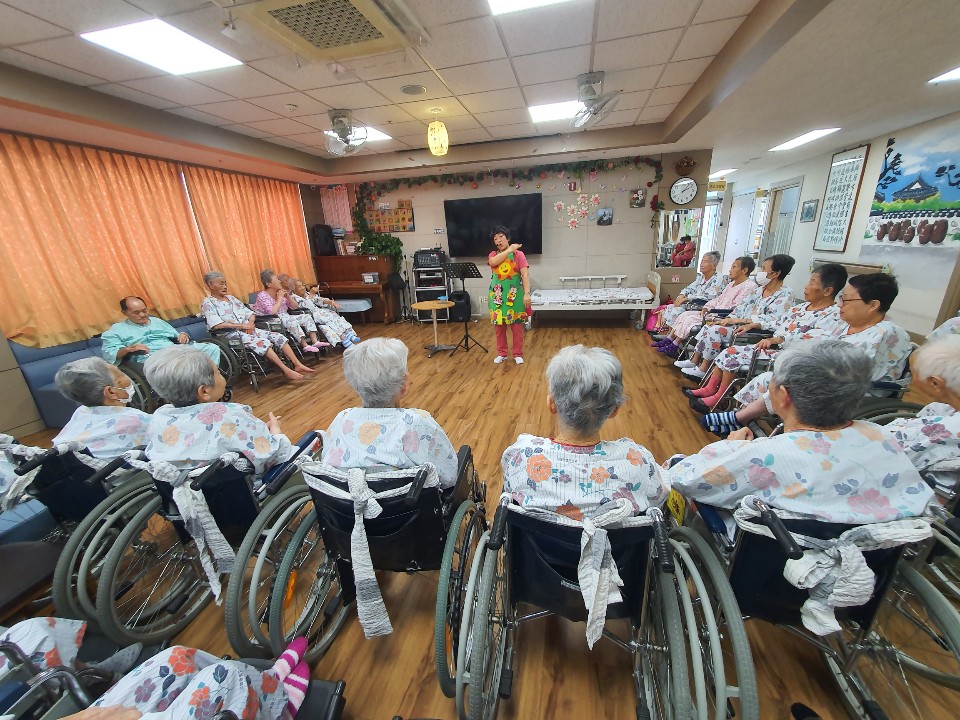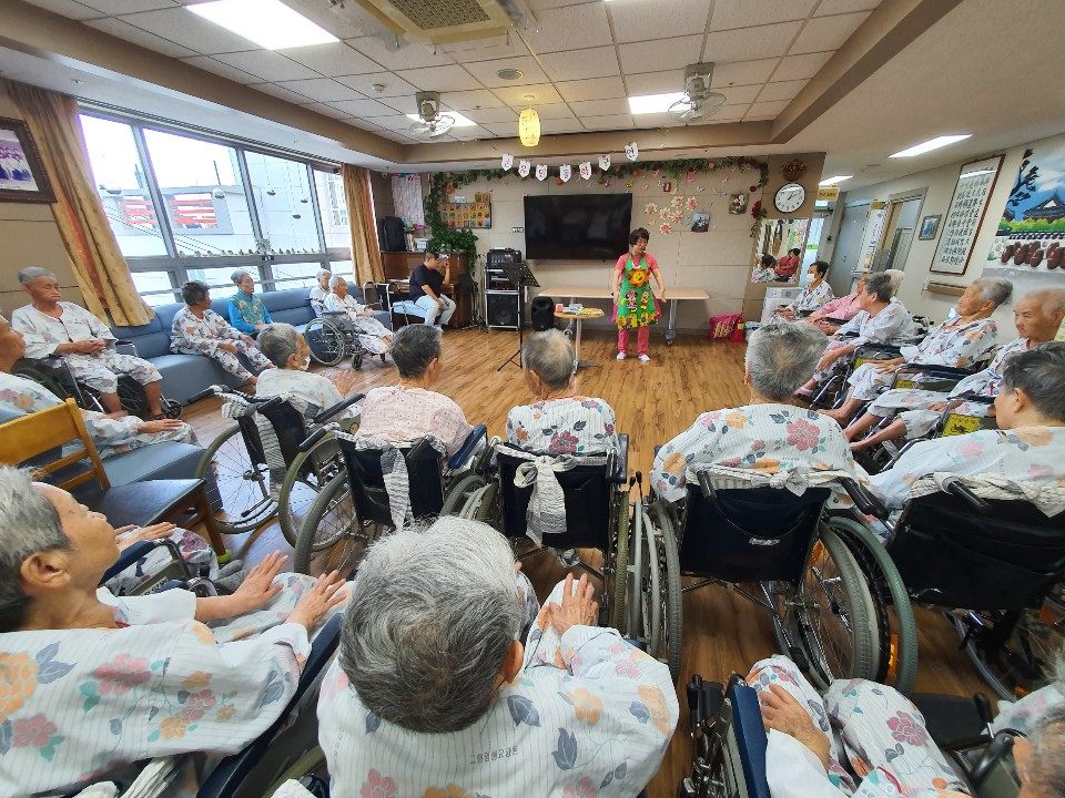 손유민 선생님과 함께 하는 동화구연~ 코로나19로 외부공연이 힘들지만 재능 있으신 선생님이 고령영생요양원에는 ~~~ 많으십니다. 손유민 선생님의 동화구연~~~ 재미 있고 즐거운 시간입니다. |