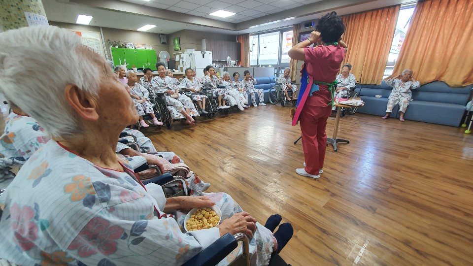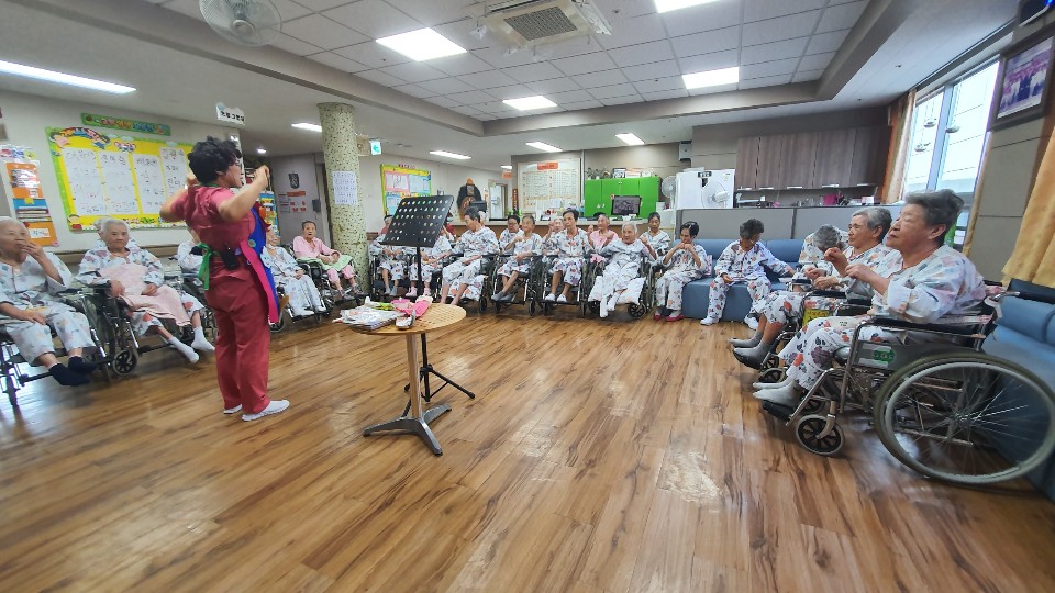 손유민과 함께 하는 동화시간 전래동화책을 동화구연을 해주셨습니다. 동화구연을 해주실때 이야기를 하셔야 해서 마스크를 벗고 마이크를 착용하신 후 어르신과 거리를 두고 진행을 하고 있으니 안심하셔도 됩니다. 재미있는 손유희와 어르신들 인지 체조까지 함께 해주셔서 어르신들 호흥도가 좋으십니다. 전래동화 이야기를 들려주시며 어르신의 호흥도가 좋은 시간이었습니다. 오늘은 어제 드신 과자가 남아서 나눠드리며 맛있게 드시며 이야기를 들으셨습니다 |