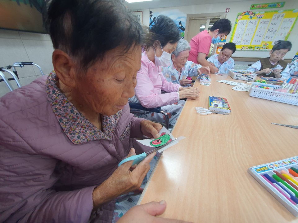 빨대인형만들기의 만들기 활동은 어르신의 인지력과 소근육 활동에 도움이 되며 쉽게 수행을 잘 하시는 작업중 하나입니다. 색칠하고 만든 인형을 흔들며 역할놀이를 해봅니다. " 영순아 오늘 뭐 먹었어" ㅎㅎ 만든 후 사탕을 나눠드려 드시도록 해 드렸더니 더 수행도가 좋으셨습니다. |