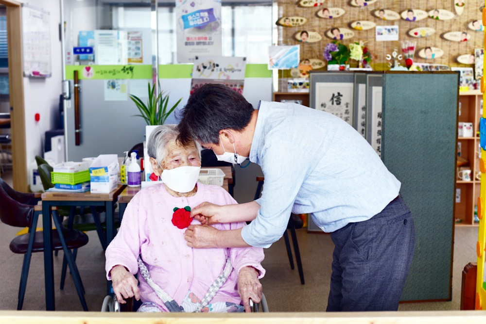 카네이션 꽃바구니는 청소년문화의집 어울림 동아리 학생들이 직접 만들어 요양원에 전달 해 주셨고 카네이션 코사지(뜨개질)은 최윤희 요양보호사 선생님께서 몇달 전부터 준비해 주셔서 어버이날을 맞이해 어르신들 한분한분에게 원장님께서 전달드려 어버이날 행사를 준비했습니다. 내년에는 봉사단이 오셔서 흥겨운 한마당도 함께 준비 할 수 있기를 바랍니다. |