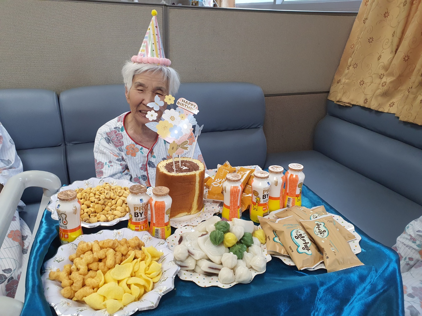 이쁜 모자와 생신상을 준비해 드렸습니다.