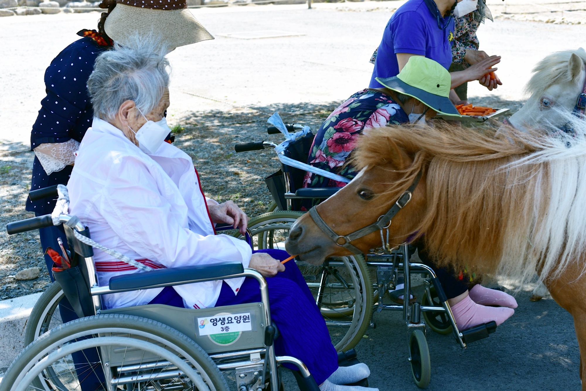 고령 승마장에서 포니 체험을 했어요 포니에게 당근을 주면서 동물과 교감하시고 대가야카라반 승마장에 위치한 족욕카페 포카오에서 족욕을 체험함으로 즐거운 하루 보내셨습니다. . 아로마 족욕체험은 정신을 맑게하고 어르신의 피로를 풀어주고 독소를 제거해주는 체험으로 어르신들의 면역력을 높이고 정서적 안정을 드리고자 진행드렸으며 어르신들 동물과 교감하면서 정서적 안정도 찾으시고 아로마족욕으로 심리적 건강한 하루 되셨습니다. 나들이 전 어르신 보호자에게 알려드리고 승낙 받은 후 다녀와서 어르신들 사진을 카톡으로 보내드렸더니 감사하다고 전해 주셨습니다. |